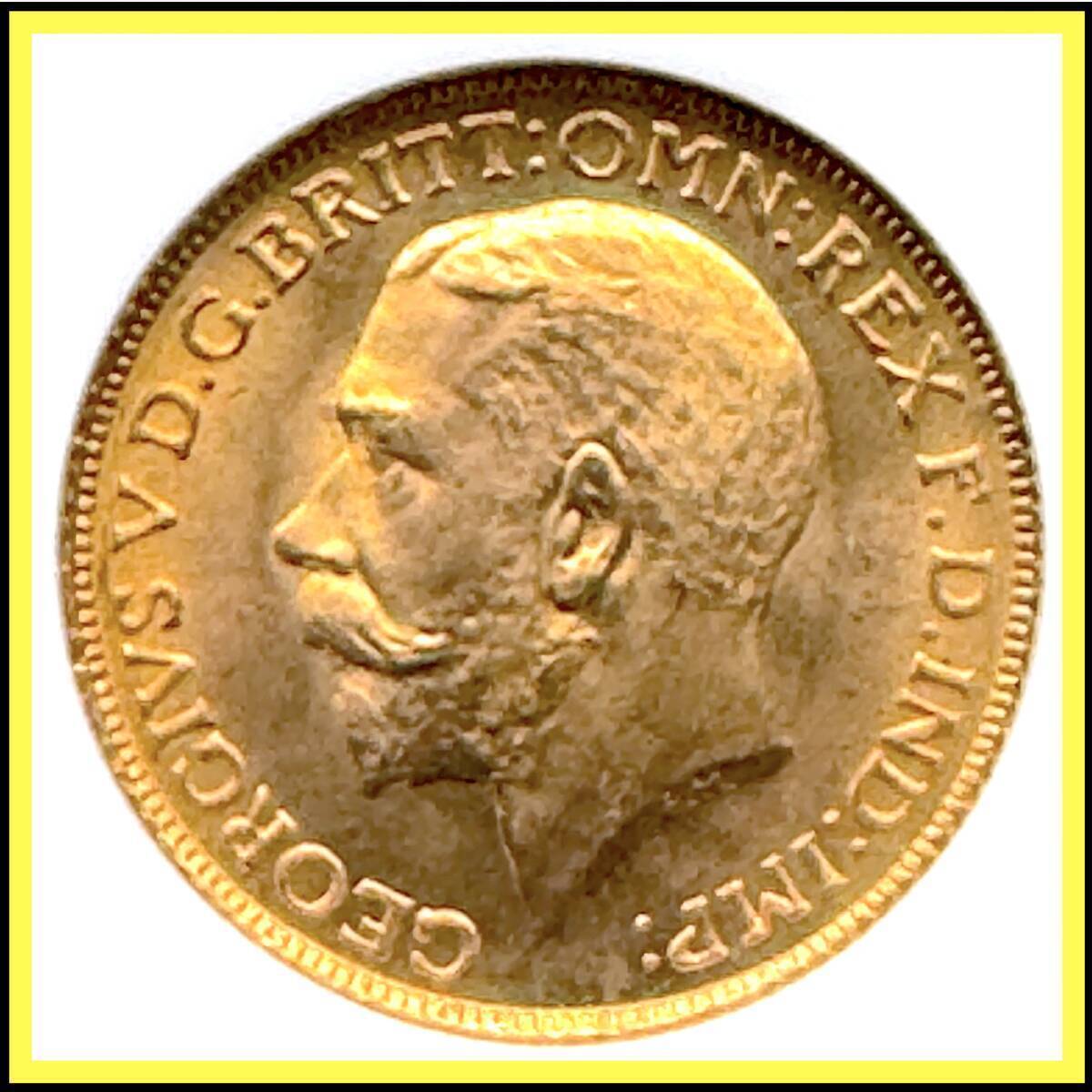 1925年発行のソブリン金貨は、特別な「ハイリム」デザインを持つ限定版です。通常発行のものと区別するために、すべてのコインが1925年の日付と高い縁を持っています。