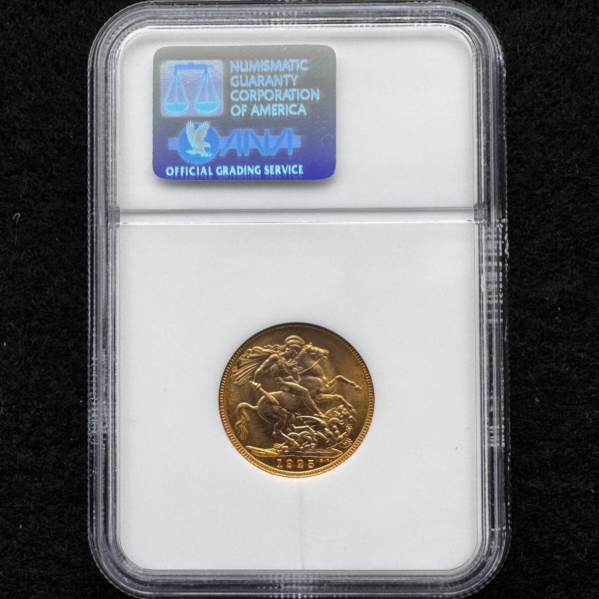 1925年 イギリス ジョージ5世 1ソブリン 金貨 NGC MS66『輝く私へのご褒美 100年の時を超えた奇跡 高鑑定』伝統と品格を手元に1Sovゴールド