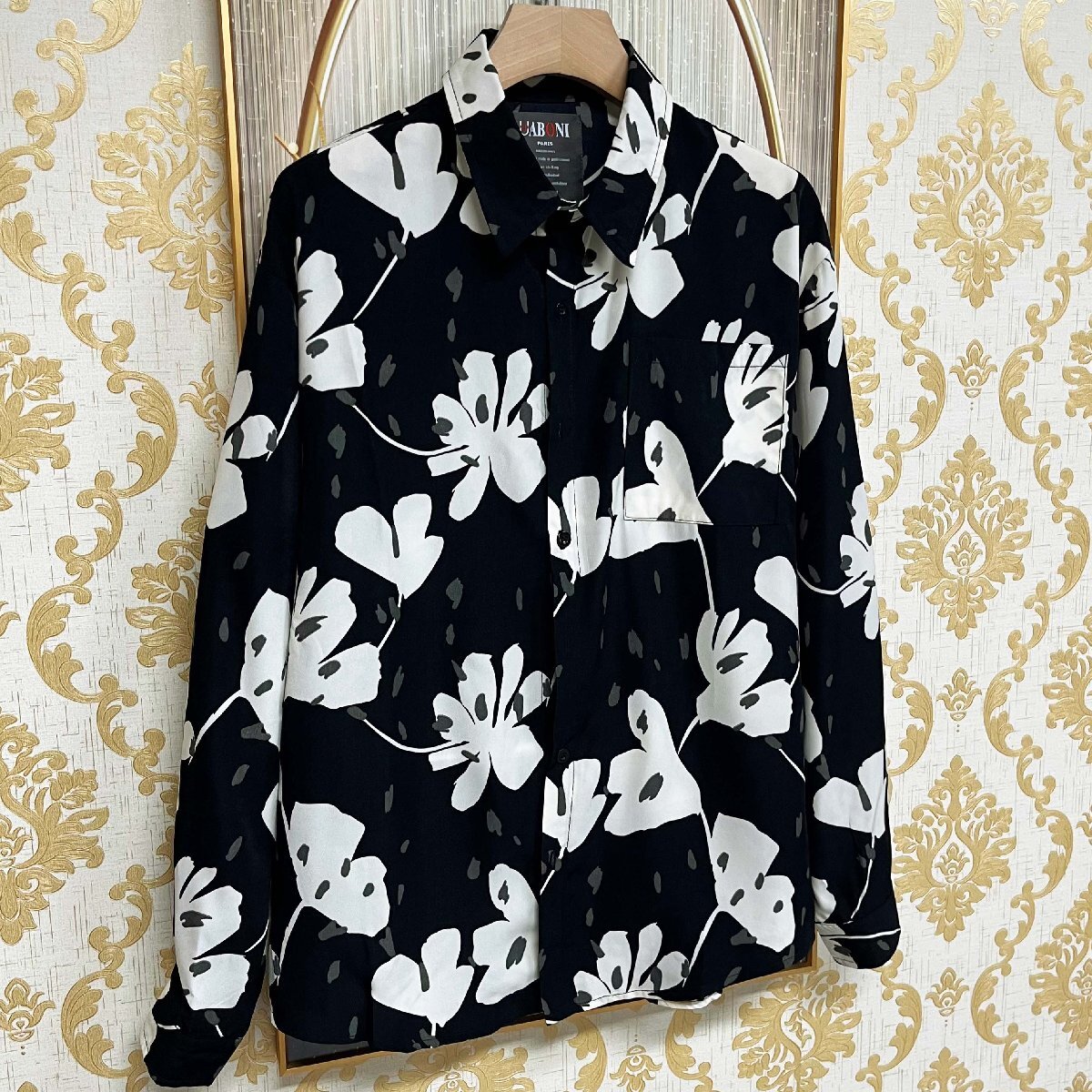 高級EU製&定価7万◆UABONI*Paris*長袖シャツ*ユアボニ*パリ発◆シルク混 柔らかい 花柄 ゆったり 開襟シャツ カジュアル リゾート XL/50