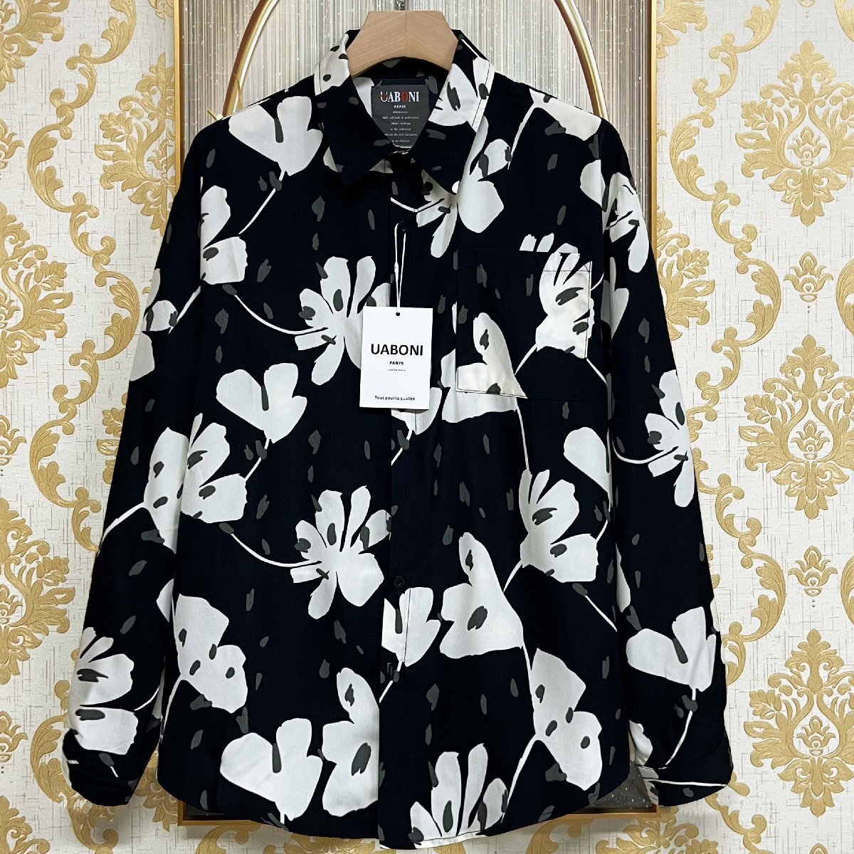高級EU製&定価7万◆UABONI*Paris*長袖シャツ*ユアボニ*パリ発◆シルク混 快適 柔らかい 花柄 ゆったり 開襟シャツ カジュアル リゾート 秋 XL/50サイズ