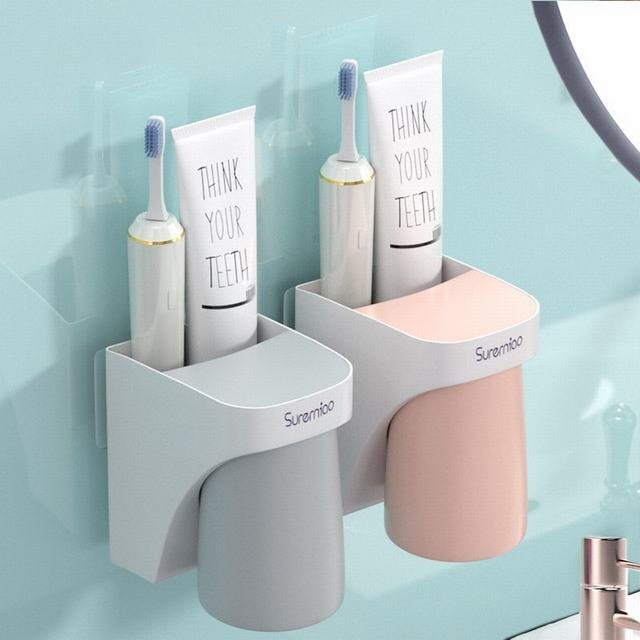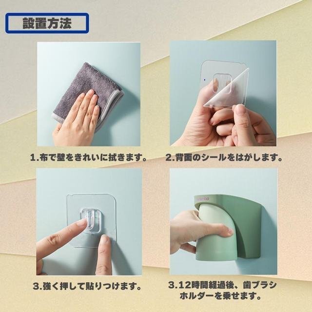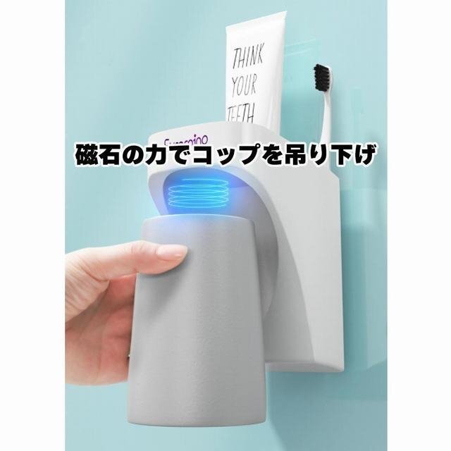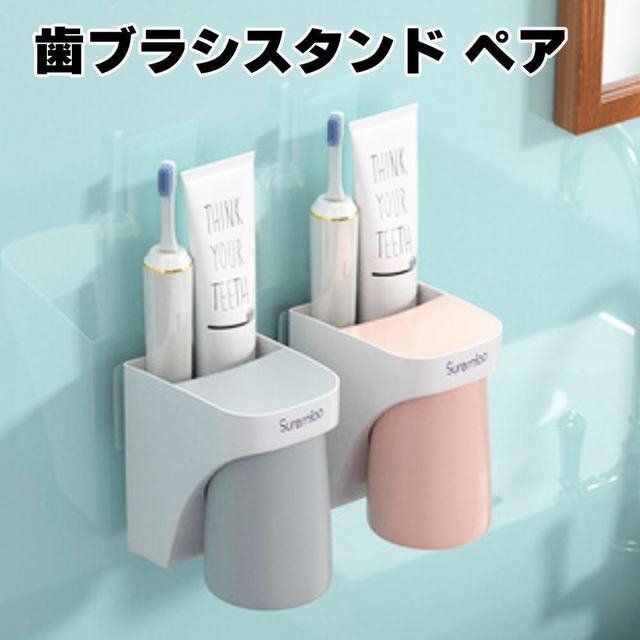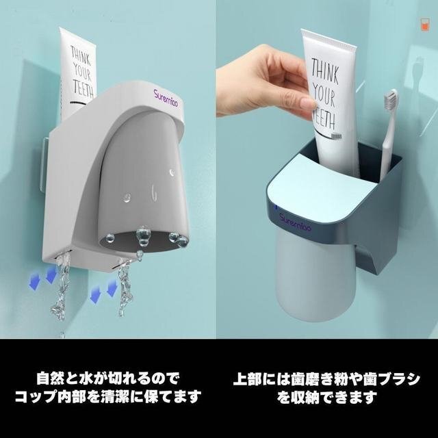 "歯ブラシスタンド(コップつき)ペア ?カラー:グレーと ブルー ?サイズ:12㎝×8㎝×12㎝ ?素材:ポリプロピレン 【早い乾燥】 この歯ブラシホルダーは、磁石の力でコップを吊り下げるように設計されており、コップに残された水が乾きやすいです。 【洗面台すっきり】 粘着パッドで壁に掛けられ、浮かせ収納することにより、洗面台がすっきり!洗面台を使う時の水沫等が歯ブラシやコップに飛ぶこともなく、衛生的です。 【取付簡単】 粘着パッドで取付でき、壁に穴を開けたり、くじを使ったりすることありません。粘着パッドの荷重力は約2.5kgです。"