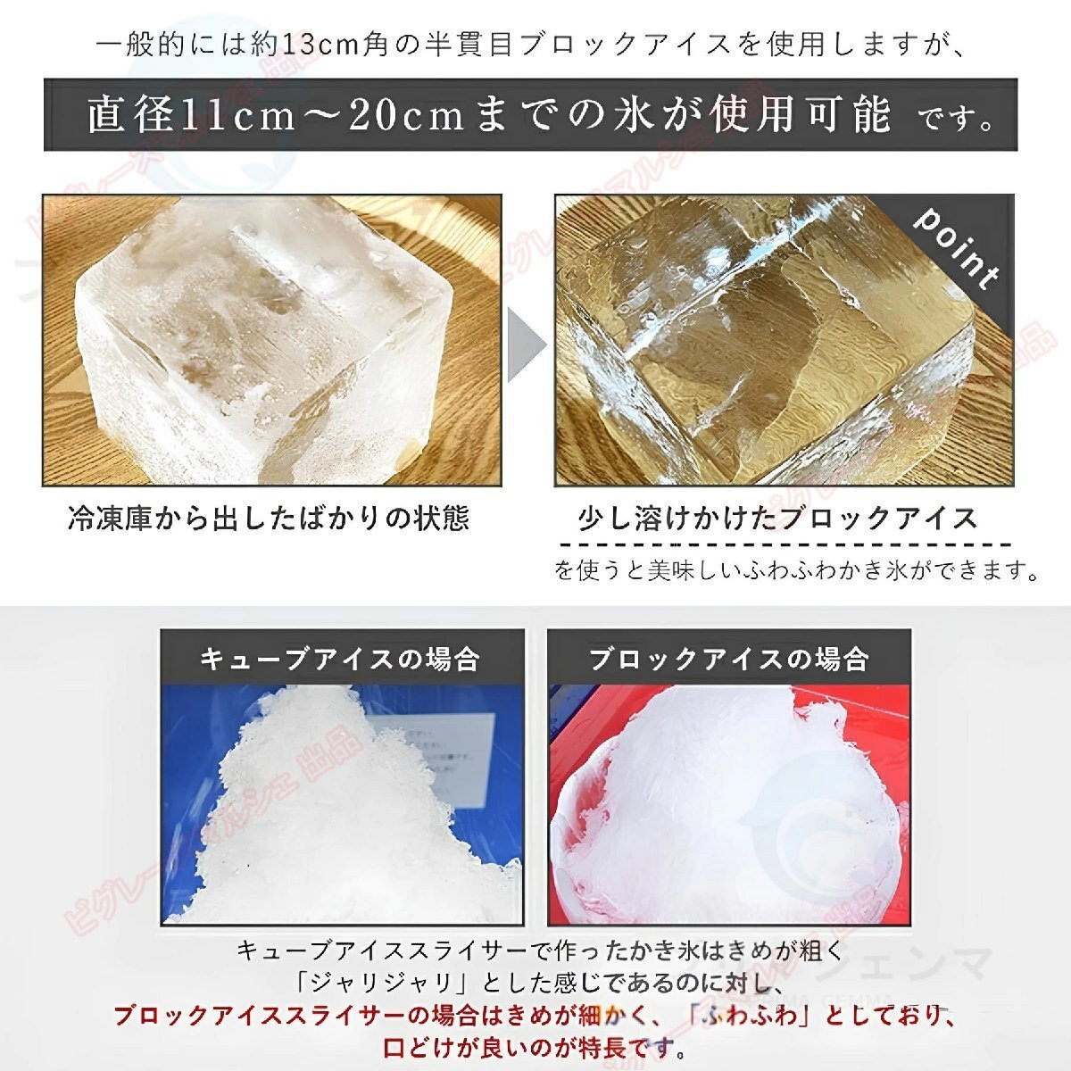 ★厚さを調整し、細かい氷 - ナイフの隙間を小さく、粗い氷 - ナイフの隙間を大きくします。
