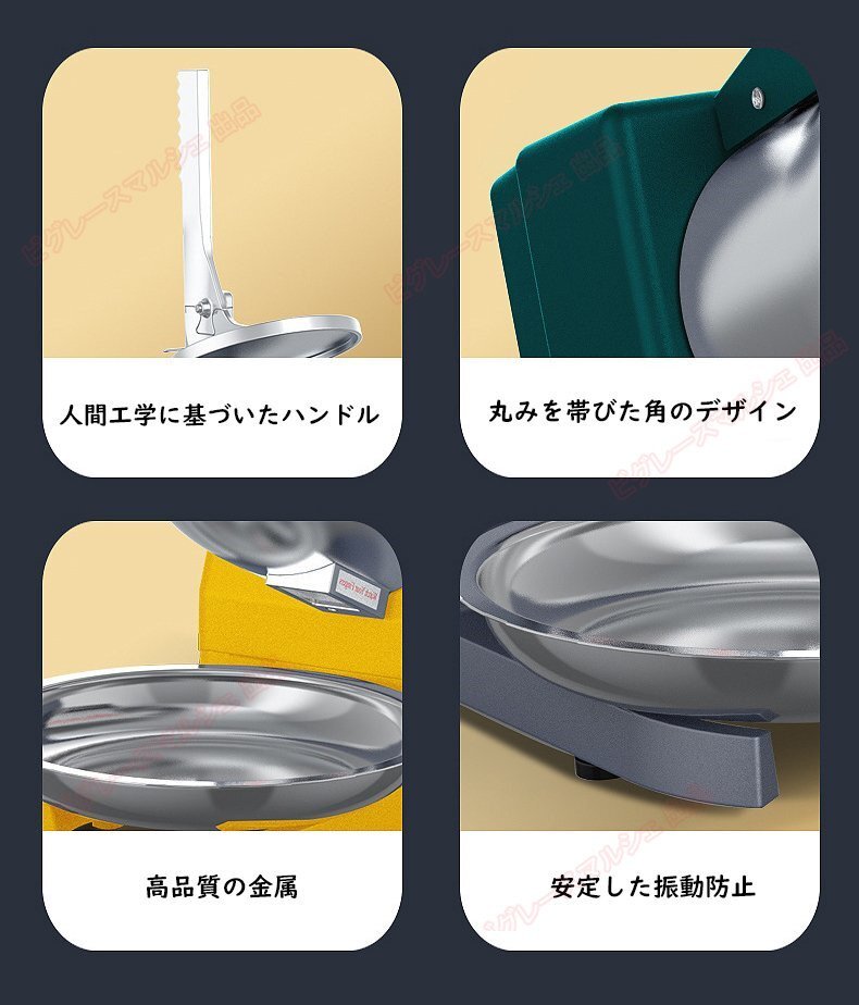 ★【安全設計】 電動アイスシェーバーマシン の思慮深い設計は、私たちの安全を保証します。ハンドルを開けると刃の回転が止まり、怪我をしないように自動的に電源が切れます。かき氷用、飲料用。