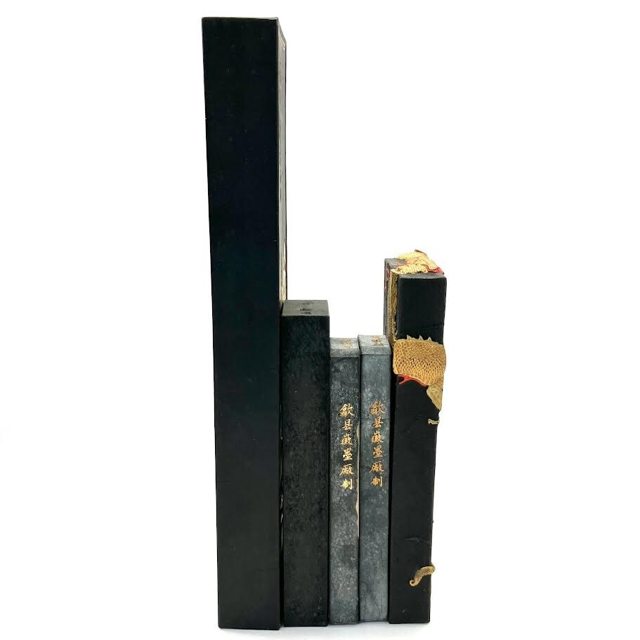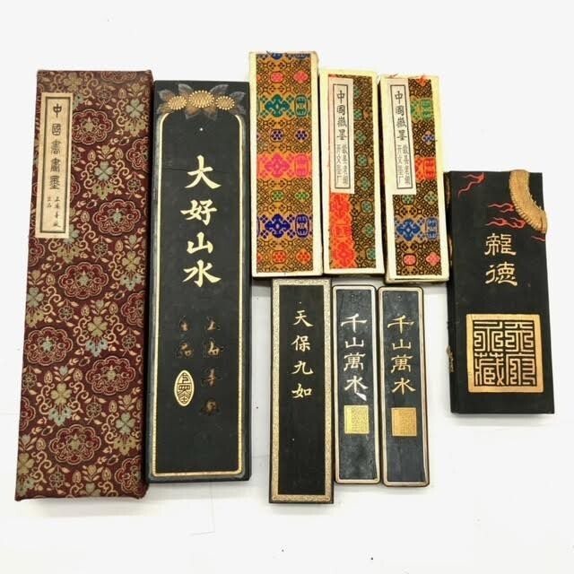 仙102 中国墨 5本まとめ 大好山水1斤 / 千山萬水 /天保九如/ 龍徳 古墨 中国 書道 書道具 中国美術 元箱あり