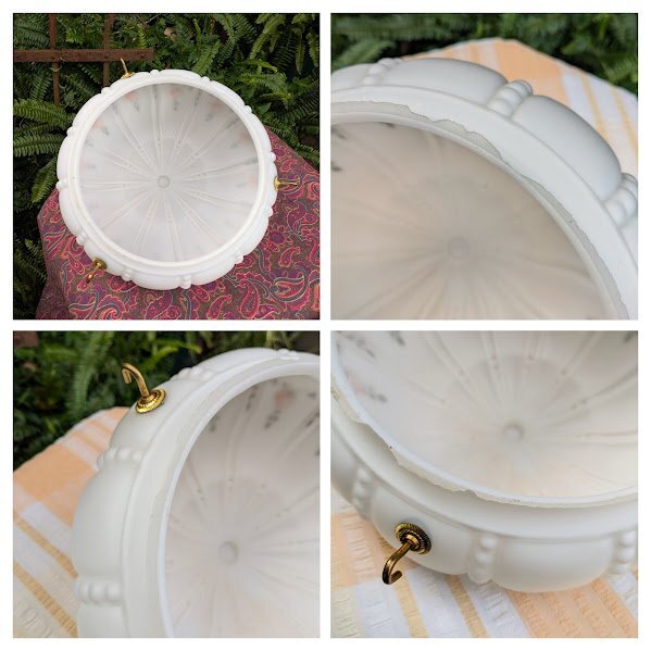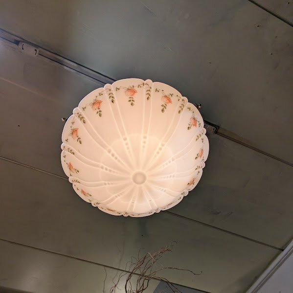 乳白色のガラスシェードには、ピンクローズに手書きの葉っぱが丁寧にあしらわれた愛らしいハンギングシェード【45-259】