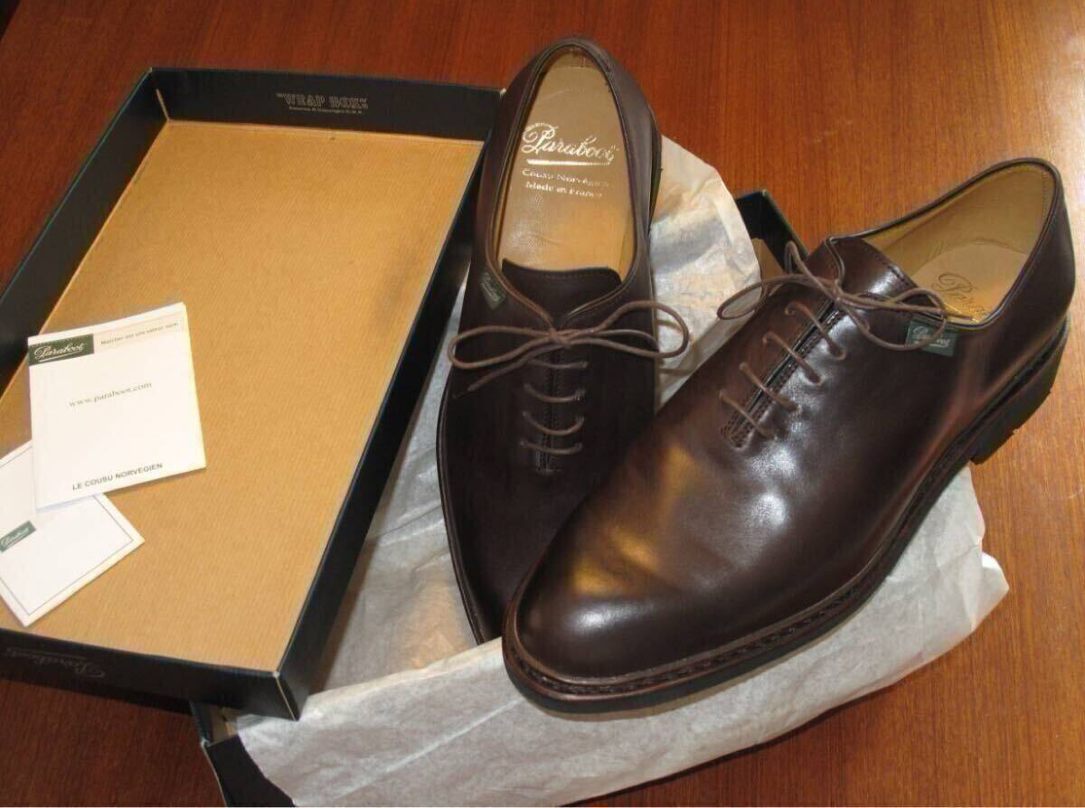 【商品の説明】パラブーツのワンピースのドレスシューズです。こちらは、日本未発売の希少なモデルです。ジャケットにグレーのパンツスタイルなどによく合うと思います。