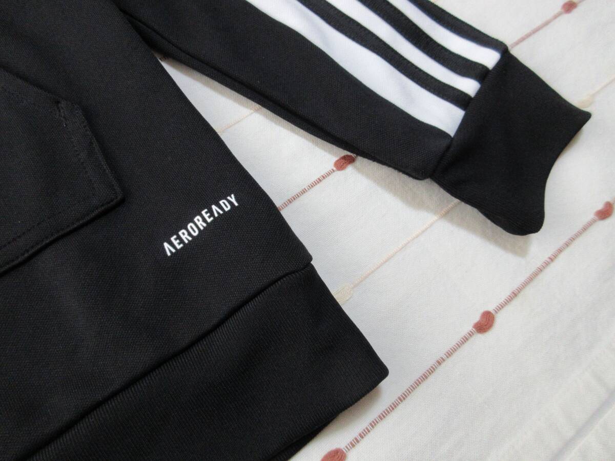 adidas アディダス AEROREADY 150cm 長袖パーカー ジャージ 黒×白 フード