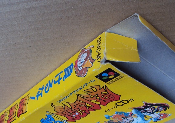 箱は キズ・汚れ・スレがあります。各面に凹みキズや窪みキズ、ふくらみキズ等があります。また、表の面の右上カドに小さな裂けがあります(写真5枚目参照)。