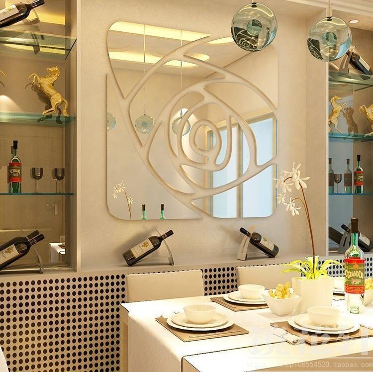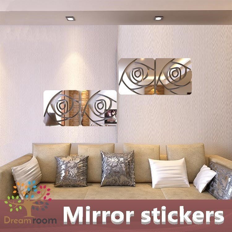 エレガント 薔薇 ミラーウォールステッカー 20×20cm 【シルバー】 1枚 鏡面 シール ウォールデコ 壁掛け 割れない鏡 インテリア