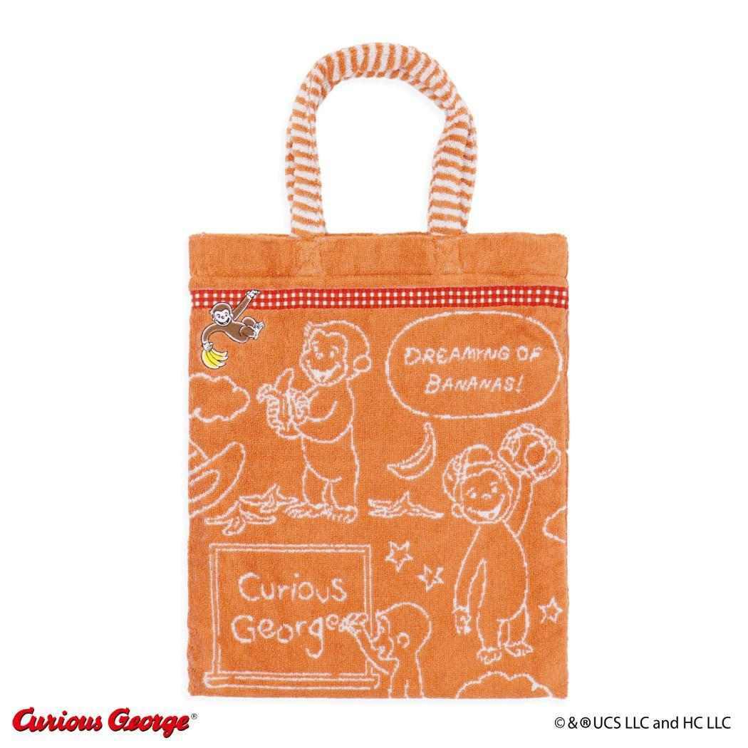 おさるのジョージ トートバッグ 無撚糸バッグ シンプルライン オレンジ タオル美術館 プレゼント A4サイズ対応 絵本キャラクター