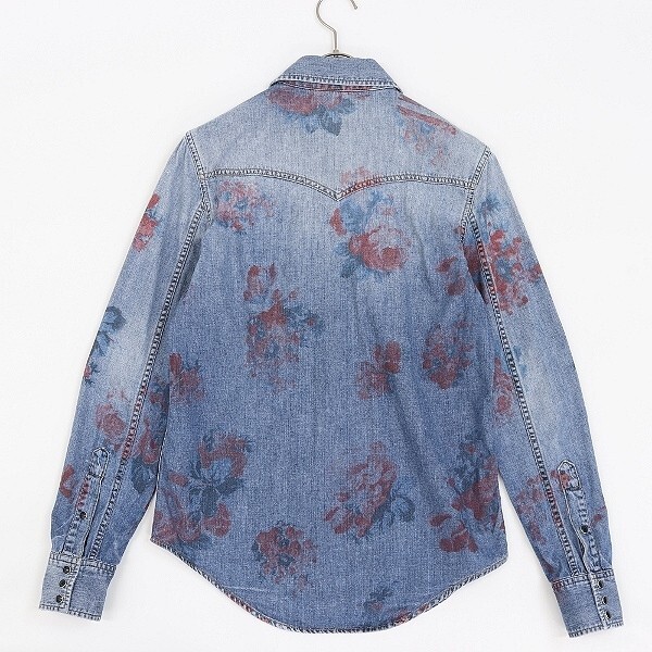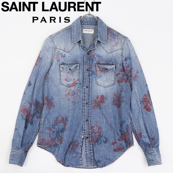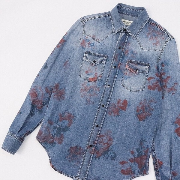 | 【HA947】イタリア製◆Saint Laurent サンローラン 花柄 デニム 長袖 ウエスタン シャツ インディゴブルー M | |