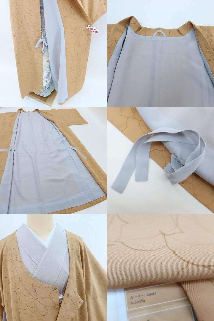 【ゆめsaku】正絹 着物 トールサイズ“カーキーに色づいた蔦の陰”ロング丈道行コート E-76