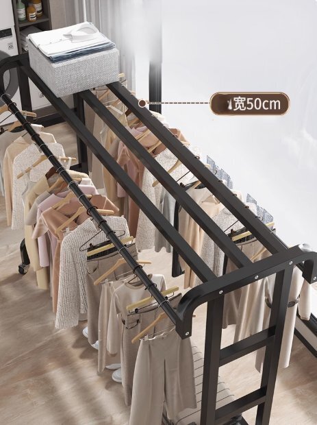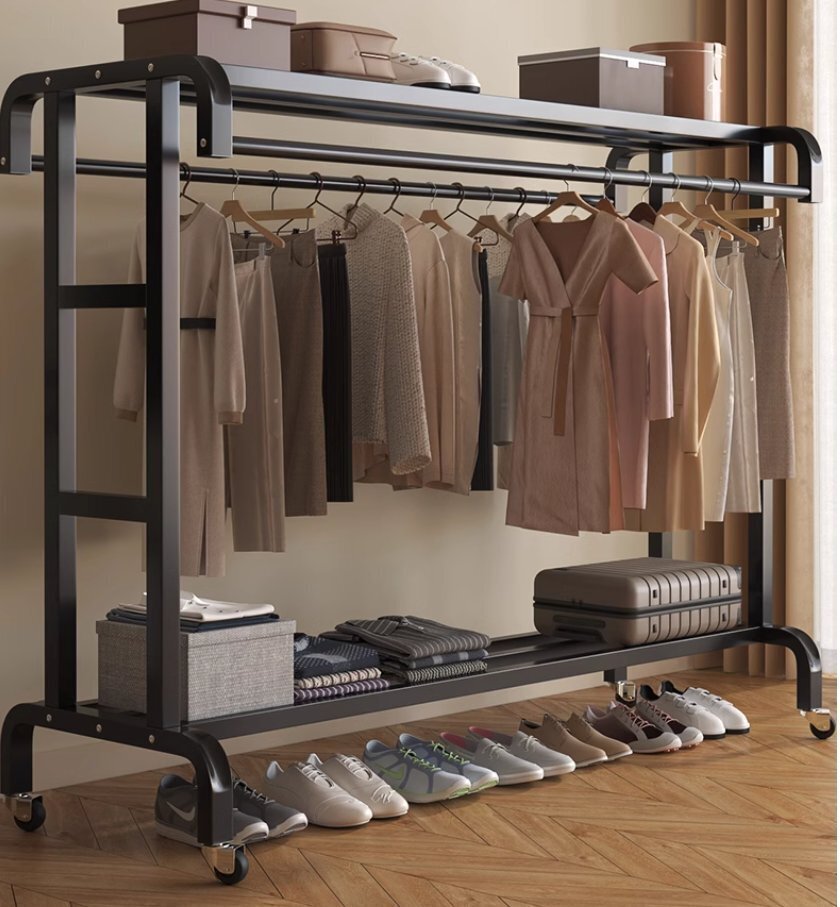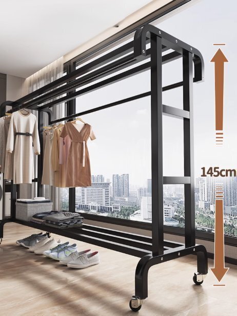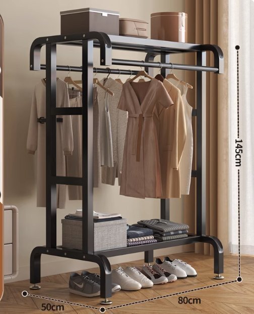 ハンガーラック 頑丈 大容量 衣類収納 洋服ラック 洋服掛け コートハンガー 帽子らっく付き ダブルハンギングロッド付き 145cm