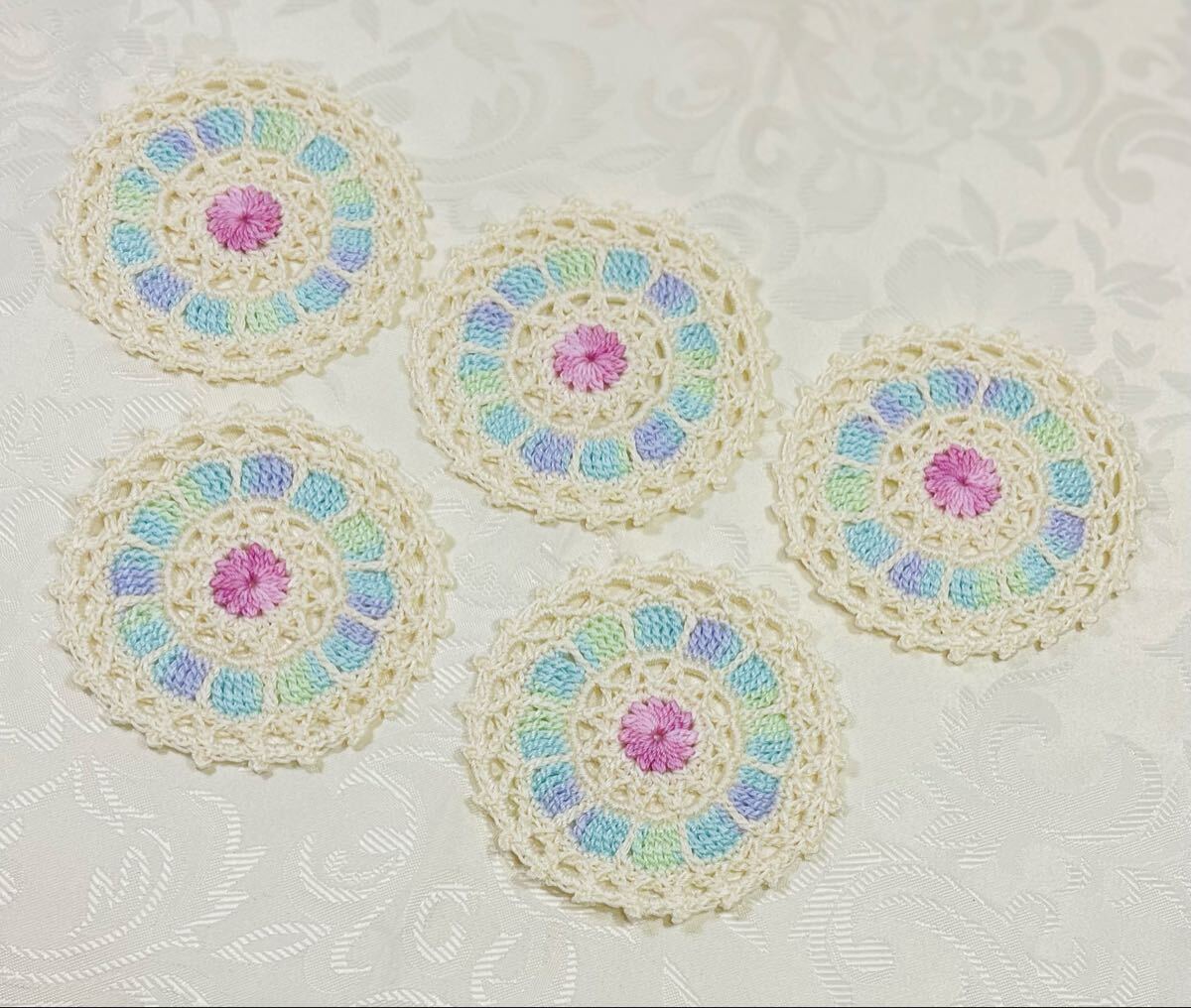 レース編みドイリー29 ハンドメイド  コットンクロッシェコースター