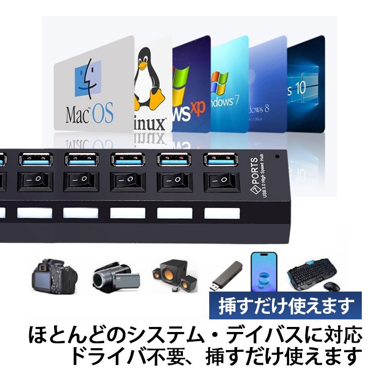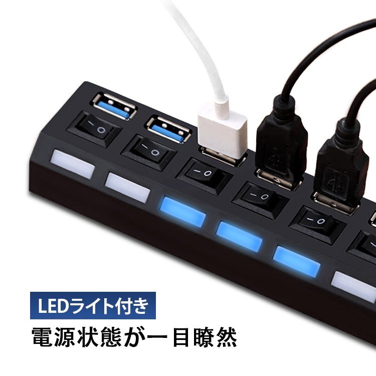 ◆USB3.0HUB 7ポート スイッチ付き 高速データ転送 安定感 7ポート搭載 最大5Gbps Windows MacPro MacBookAir対応 7ポートスイッチ付き USB3.0ハブ LEDライト付き USBHUB7SW