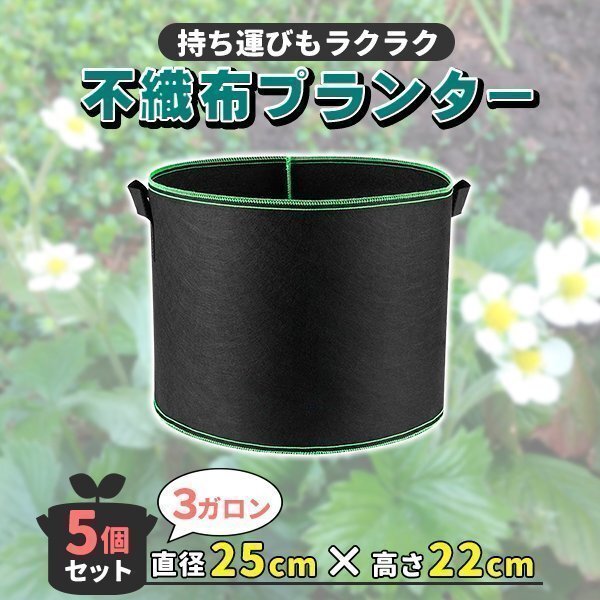 不織布プランター 不織布ポット 3ガロン 8号 5個 セット 不織布 プランター 植木鉢 大型 鉢 フェルトプランター 軽い