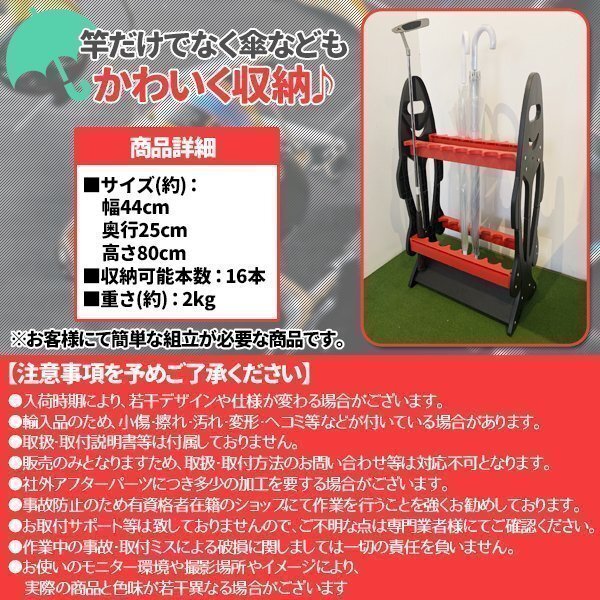 ロッドスタンド 16本 釣り竿 ロッドホルダー ロッド スタンド プラスチック 組立 ラック 収納 ディスプレイ レッド 赤