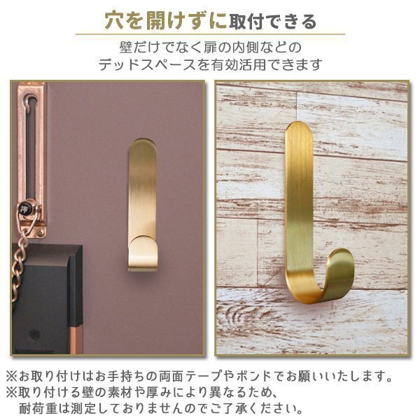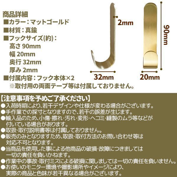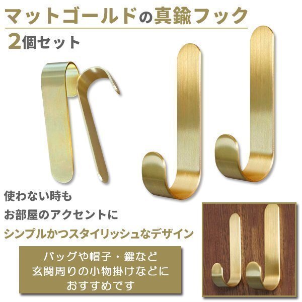 ★ 2個セット 真鍮 ブラス ウォールフック マットゴールド 真鍮フック J字 フック 小物掛け ウォールデコ インテリア アクセント