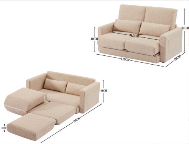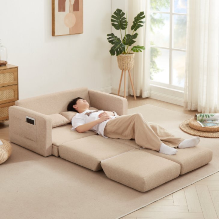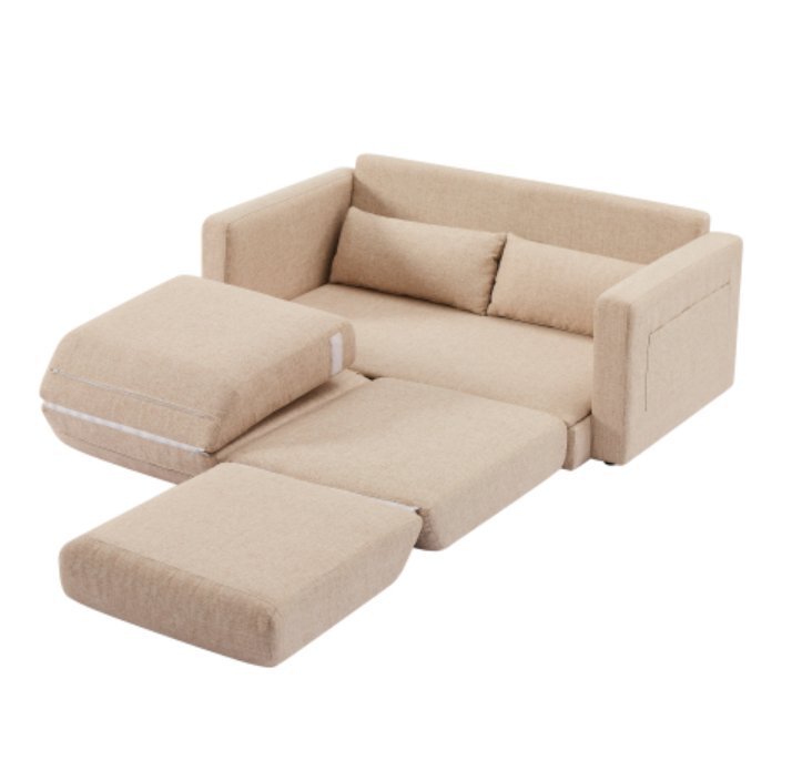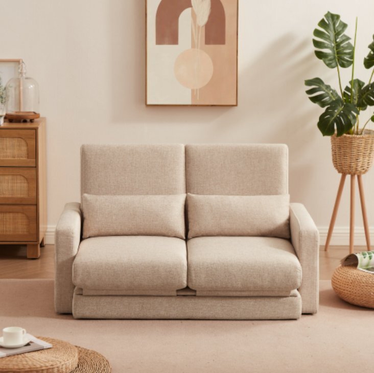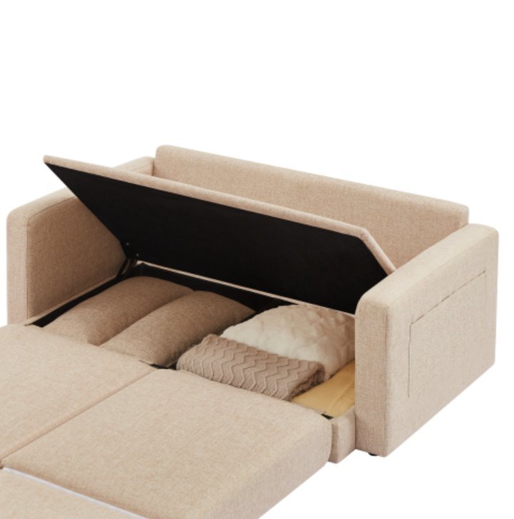 【国内発送】ソファ 2人掛け 収納付き ファブリック 両側に肘掛け付き 木脚外し可能 ローソファ コンパクト ひとり暮らし カウチソファー