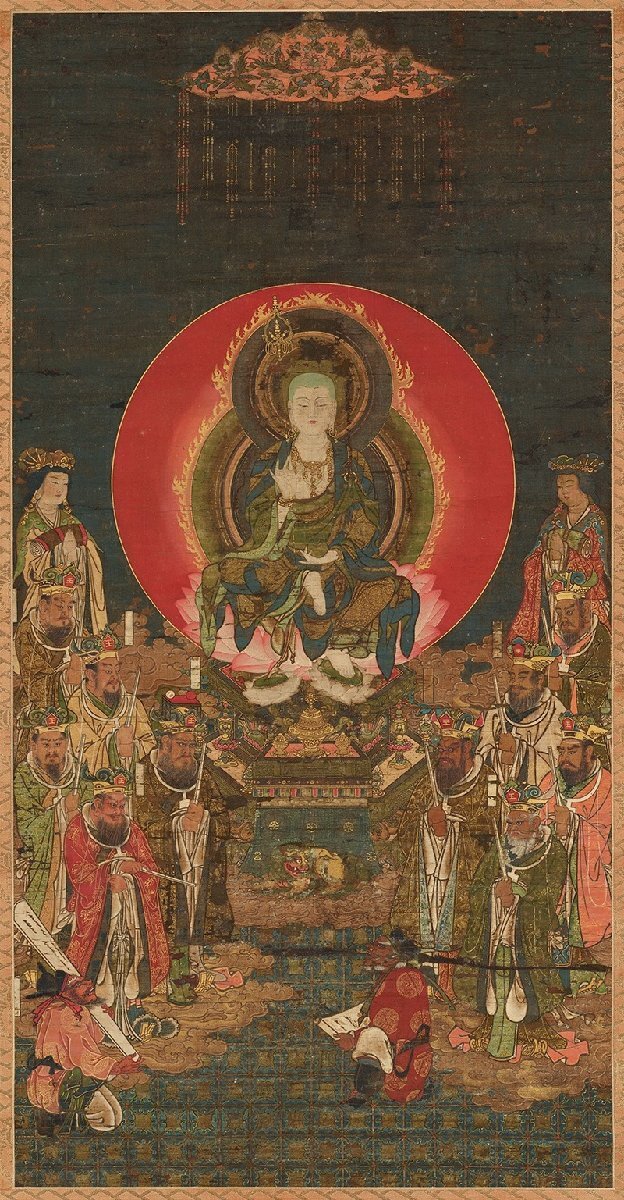 サイズ:未表装 60×115cm 韓綾 韓娟布画芯 特殊技法高級印刷