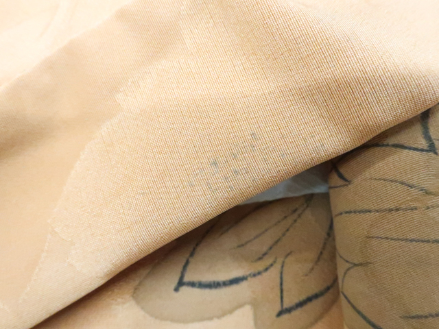 リサイクル商品のため、全体的に所々シミ汚れがございますが着用可能なお品です。 地色は茶です。 1枚目の画像が近いお色かと思われます。 素材は正絹です。 |