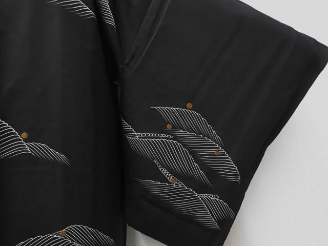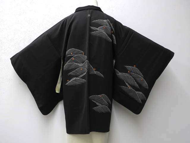 リサイクル商品のため、薄やけと羽裏にしみがございますが着用可能なお品です。 地色は 黒 です。 1枚目の画像が近いお色かと思われます。 素材は正絹です。 |