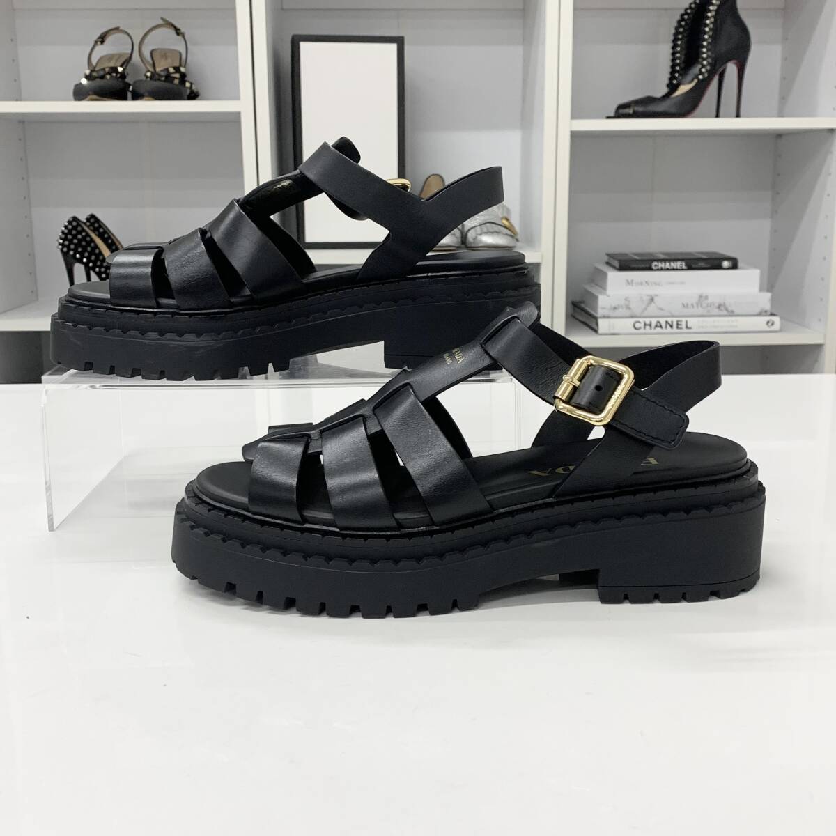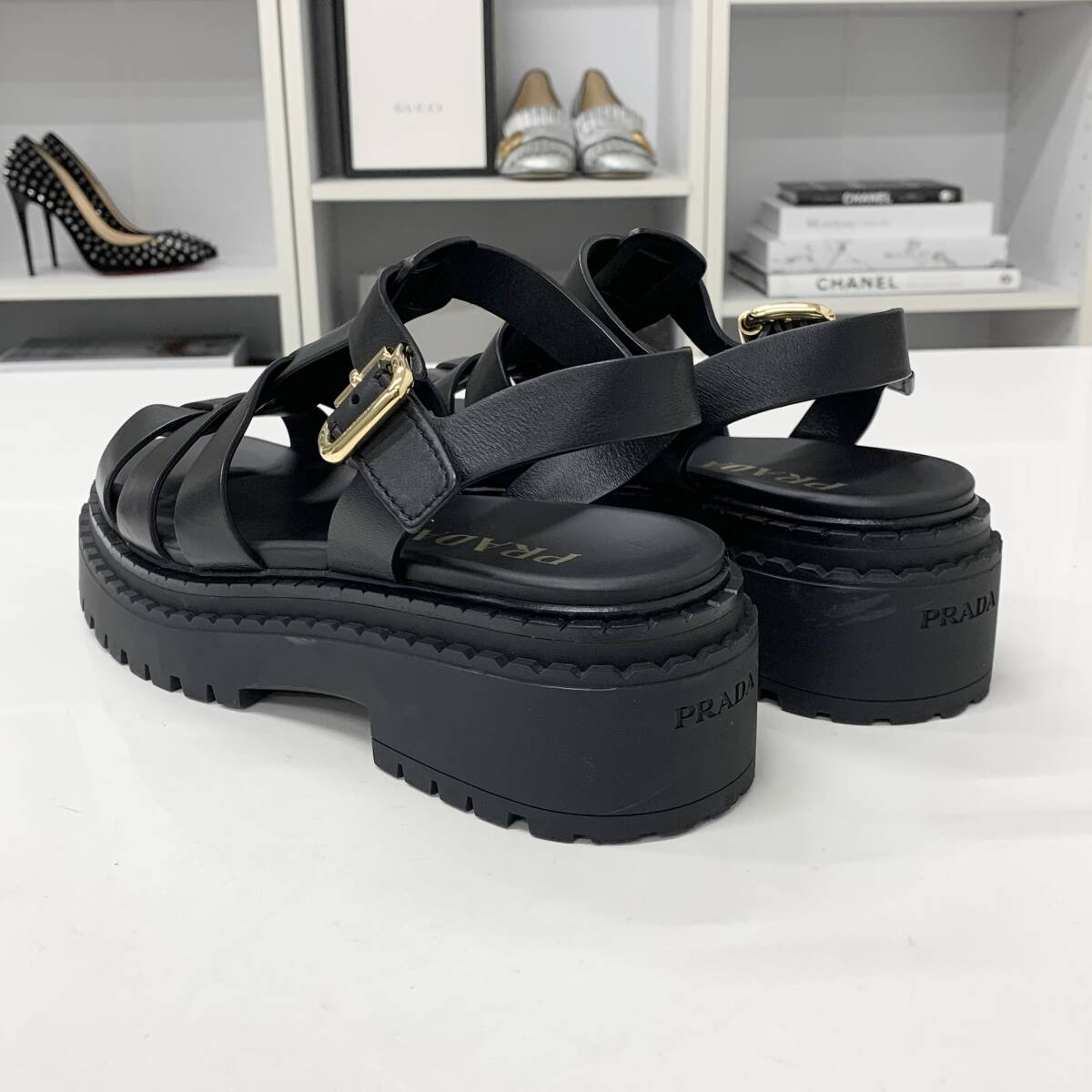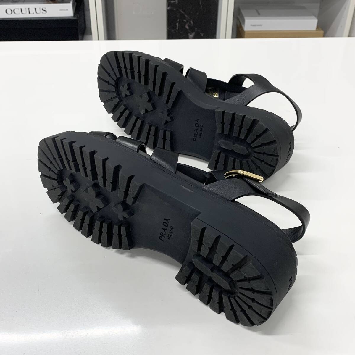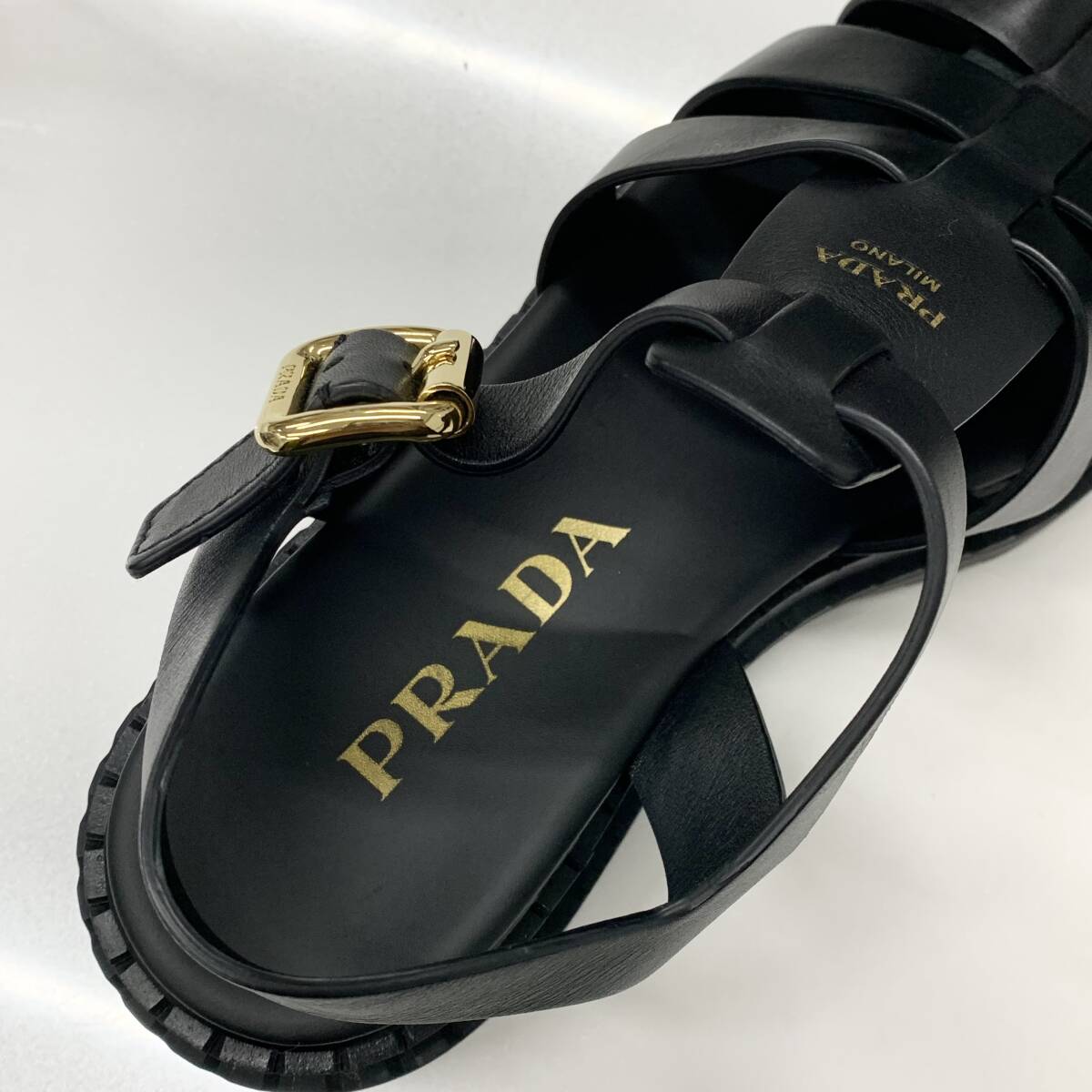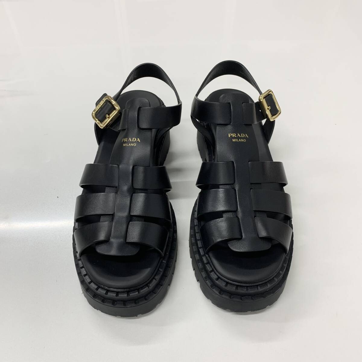 M13306 プラダ ロゴ レザー ストラップ サンダル ブラック