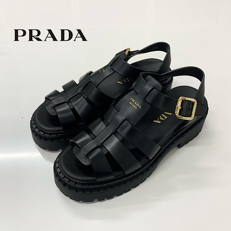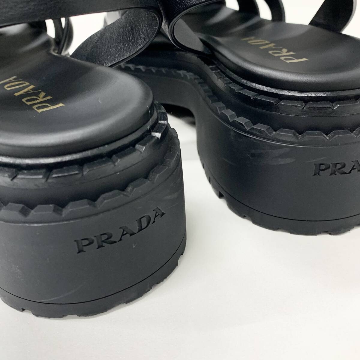 プラダ ロゴ レザー ストラップ サンダル ブラック