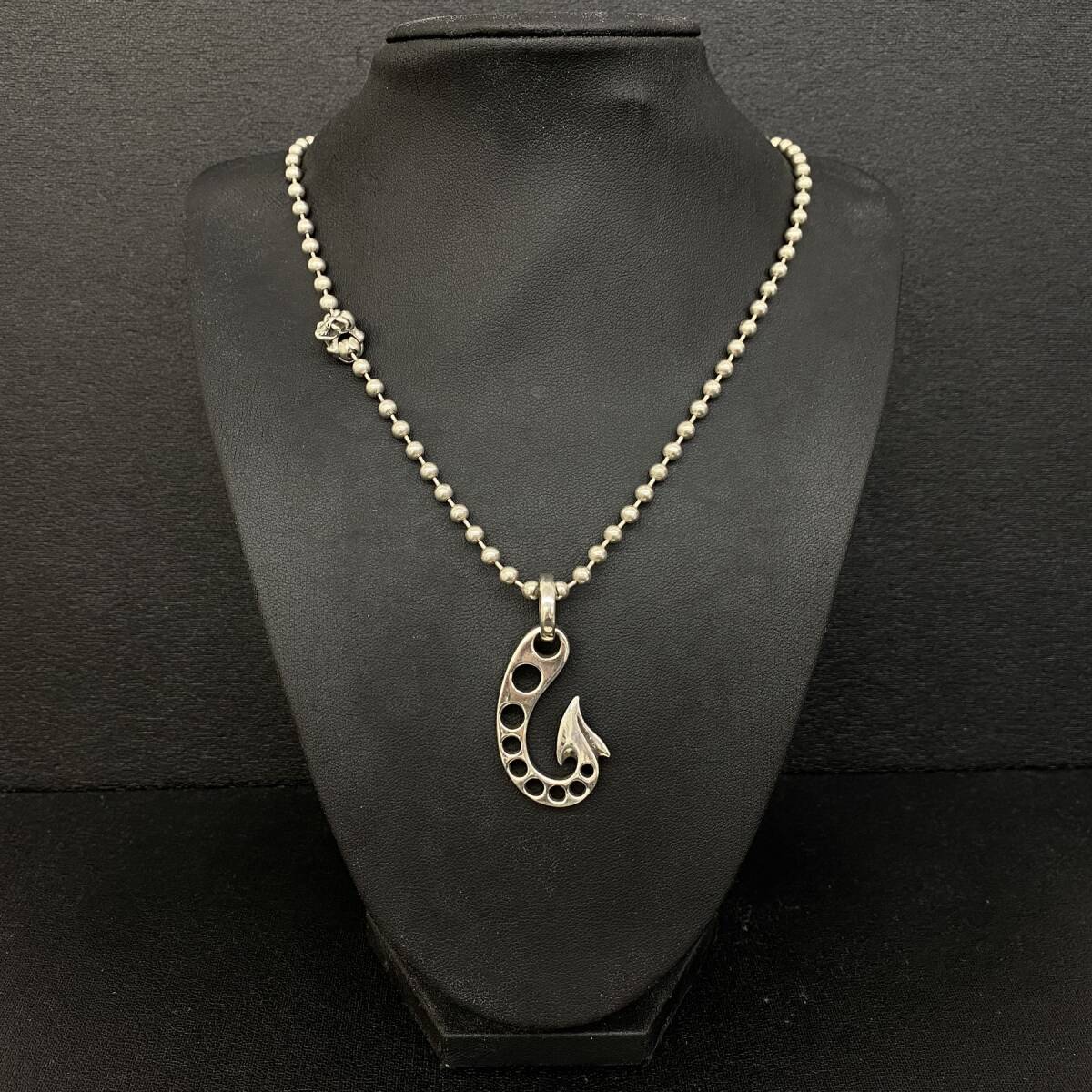 Bill Wall Leather ビルウォールレザー BWL シルバー 925 スカル ホール フィッシュフック リング ペンダントトップ ネックレス チェーン