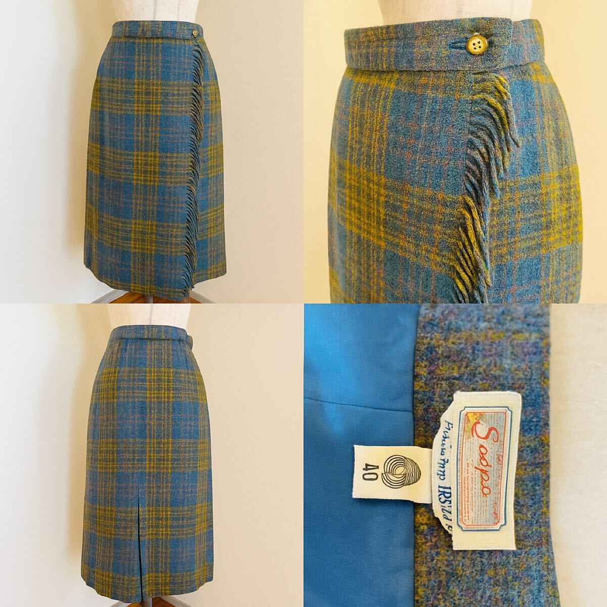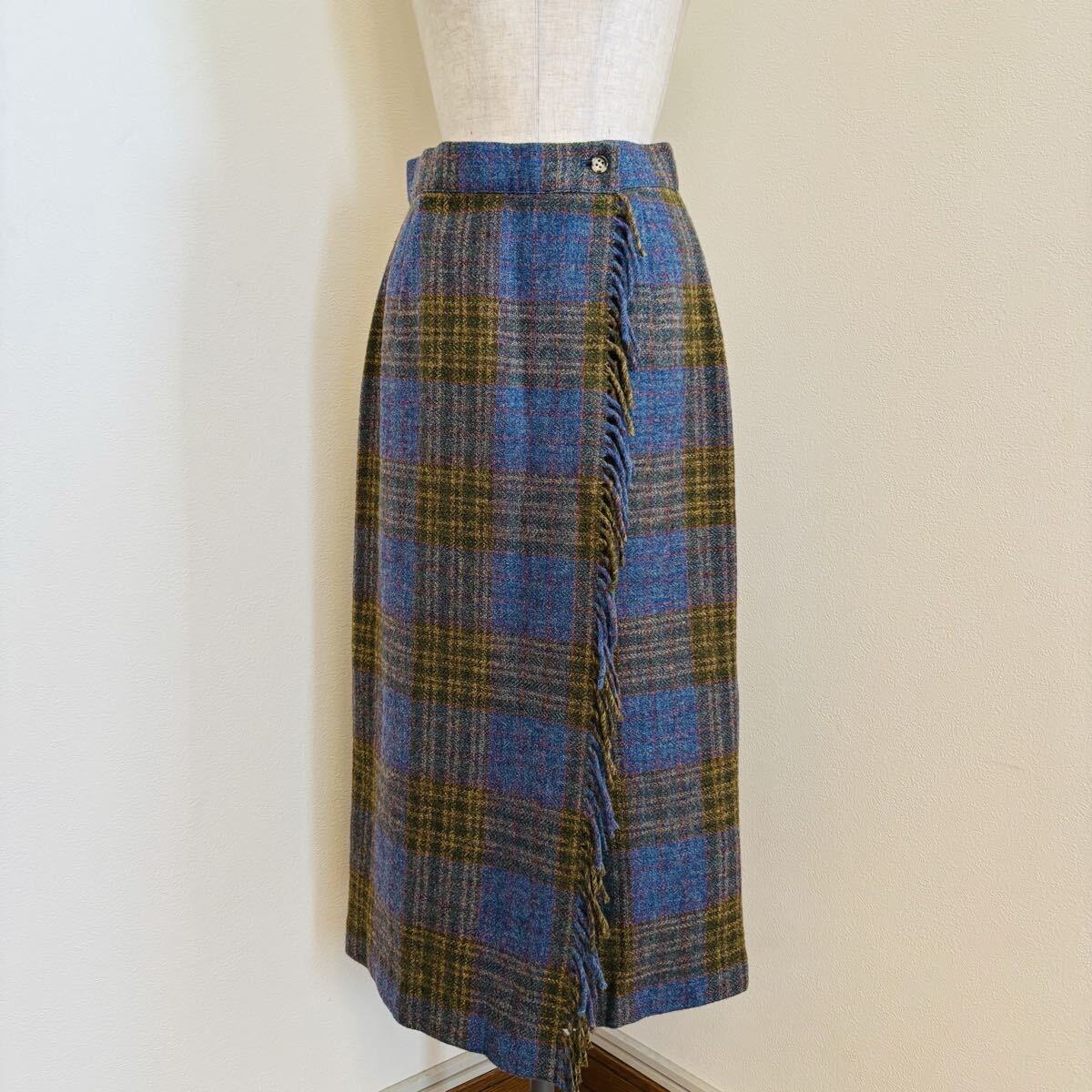 ヴィンテージ スキャパ Scapa of Scotland チェック Fabric from Ireland 巻きスカート/ウールスカート レディース40/アイルランド製 英国ブランド 秋冬 クラシカル