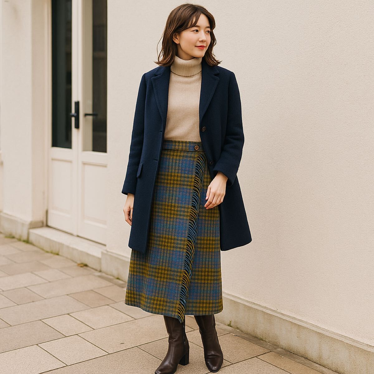 ブーツやニットと合わせるだけで英国トラッドな秋冬コーデが完成。