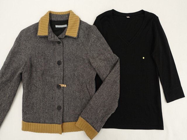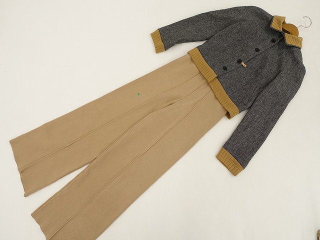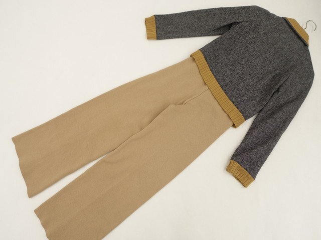長袖ツイードジャケット+七分袖カットソー+ニットワイドパンツ コーディネート上下3点セット S相当 ブラック×ホワイト&ブラウン/ブラック/ベージュ クールカジュアル