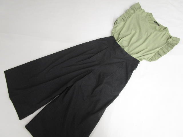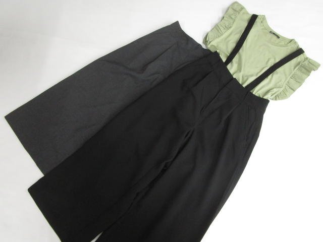 洗える半袖カットソー+サスペンダー付きワイドパンツ+クロップドワイドパンツ コーディネート上下3点セット S相当 ライトグリーン系/ブラック/グレー系 カジュアル・クール系 20~30代