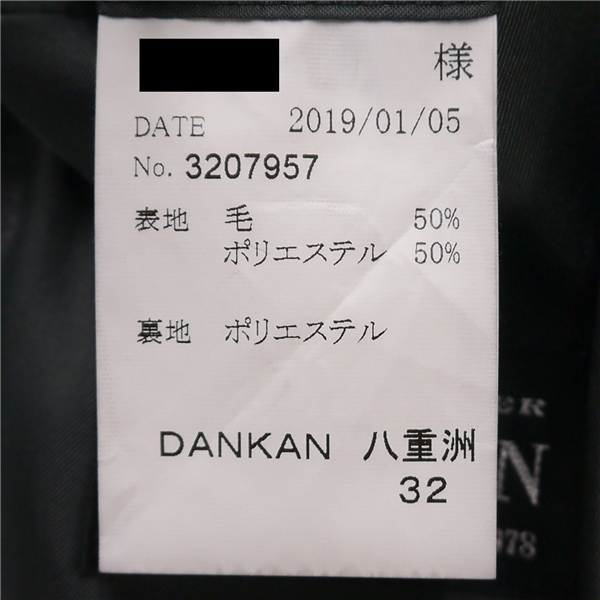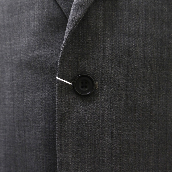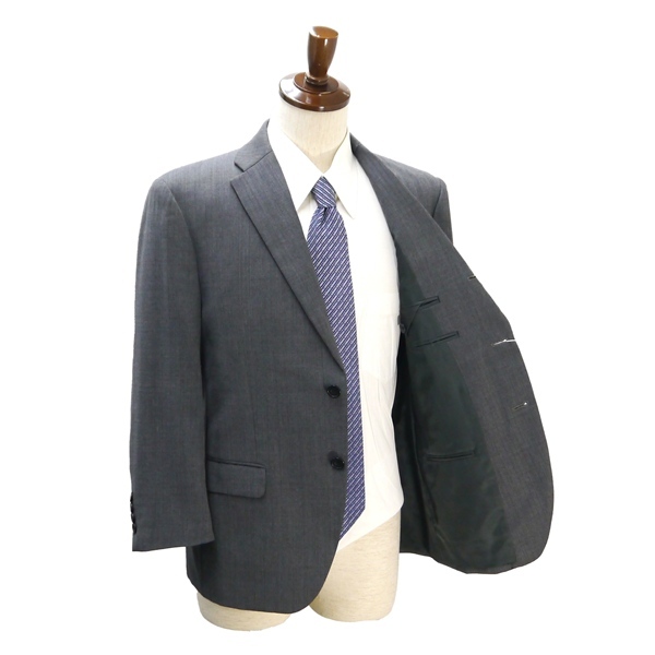 ・春秋冬対応。段返り3つボタンシングル。総裏地仕上げ。サイドベンツ。フラップポケット。ネーム刺繍なし。開き見せ。