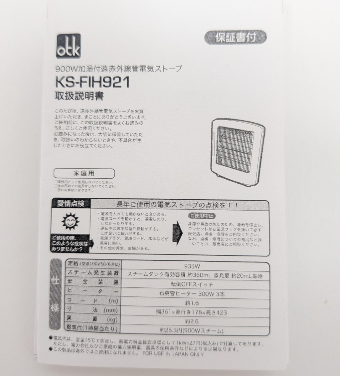 加湿付遠赤外線管 電気ストーブ KS-FIH921