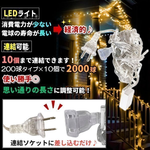 AC式 イルミネーション コンセント 連結可 LED イルミネーションライト ツリー ライト 200球 200灯 15m 透明線 ゴールド