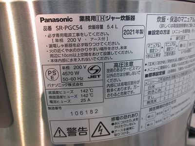 | 内容量 | 炊飯容量:5.4L(3升)炊き |