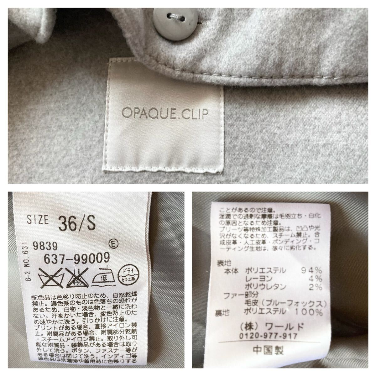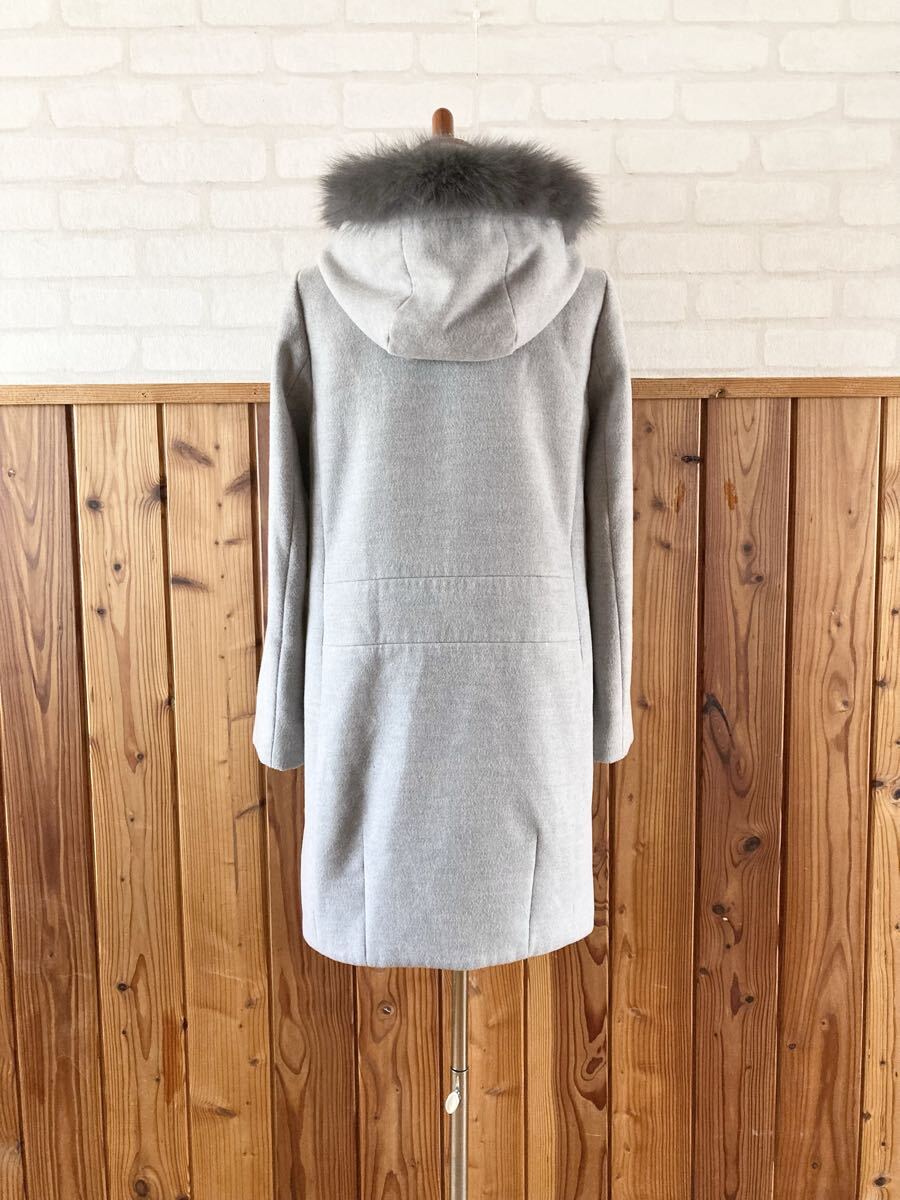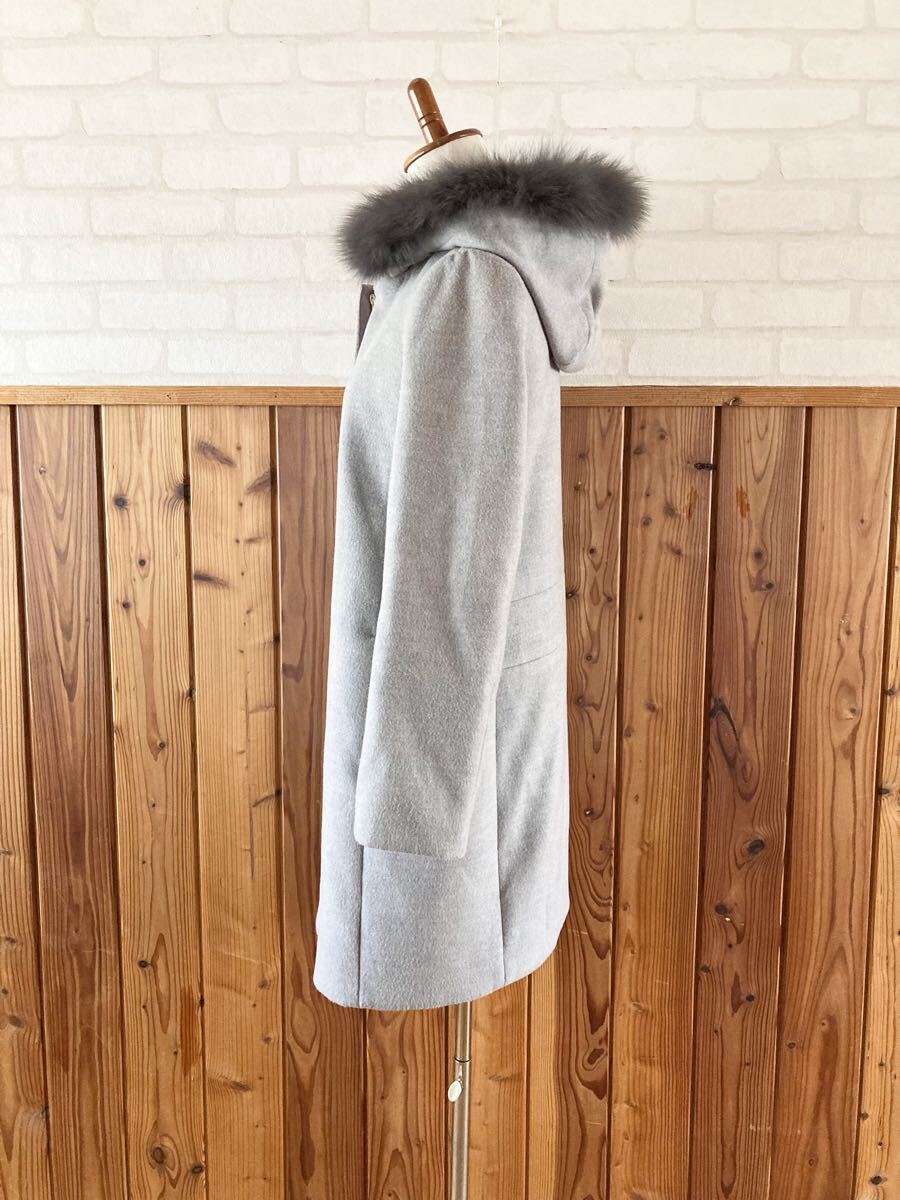 こちら、フード、ファー、共に取り外し可能、ブルーフォックスファーがデザインされたレディースコートです
