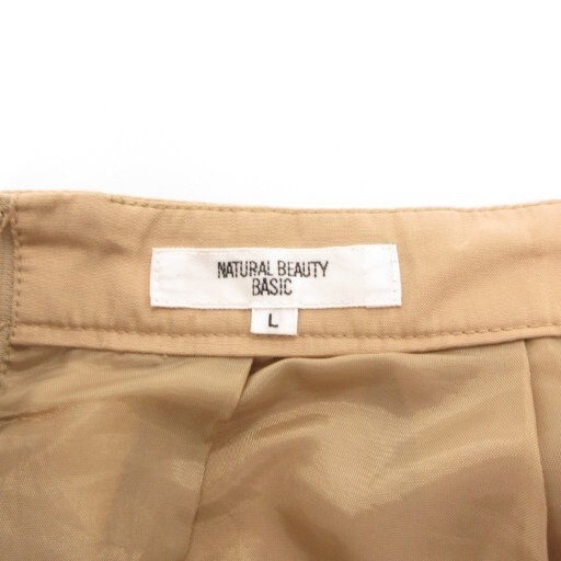ナチュラルビューティーベーシック NATURAL BEAUTY BASIC フレアスカート L タック 無地 ひざ丈 ベージュ /AE レディース