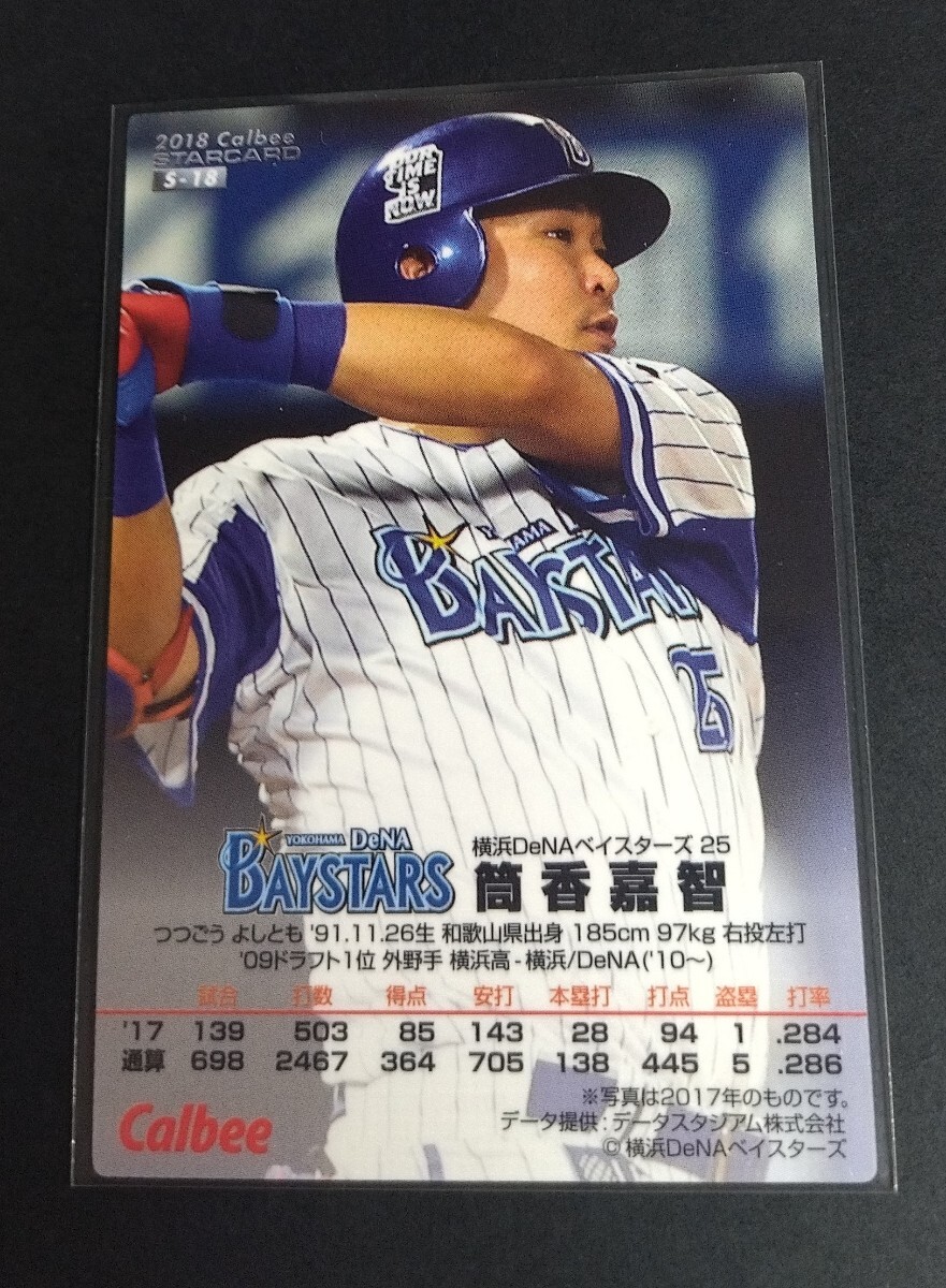2018年カルビー 第1弾 筒香嘉智(DeNA) 金箔サイン入りスターカード。No,S-18。
