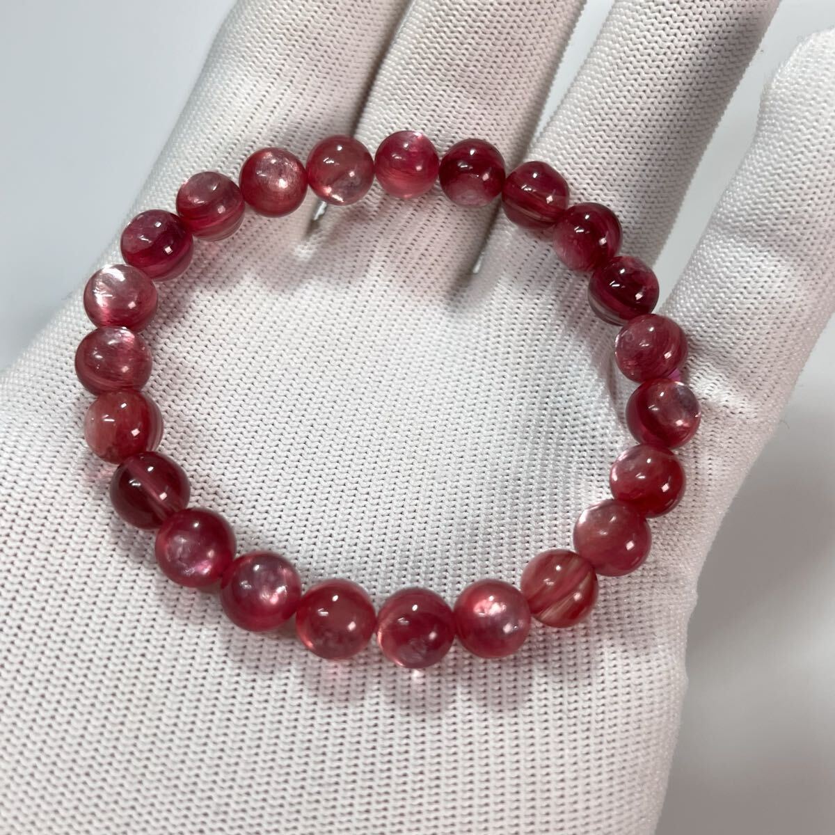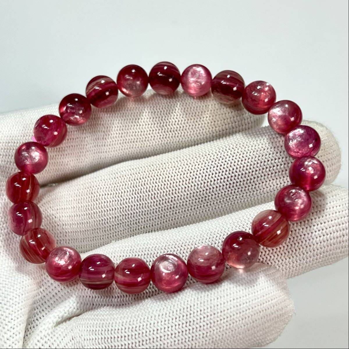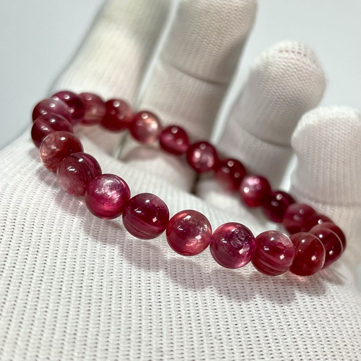 透明感のあるピンク色、ブラジル産レピドライトのブレスレットです。