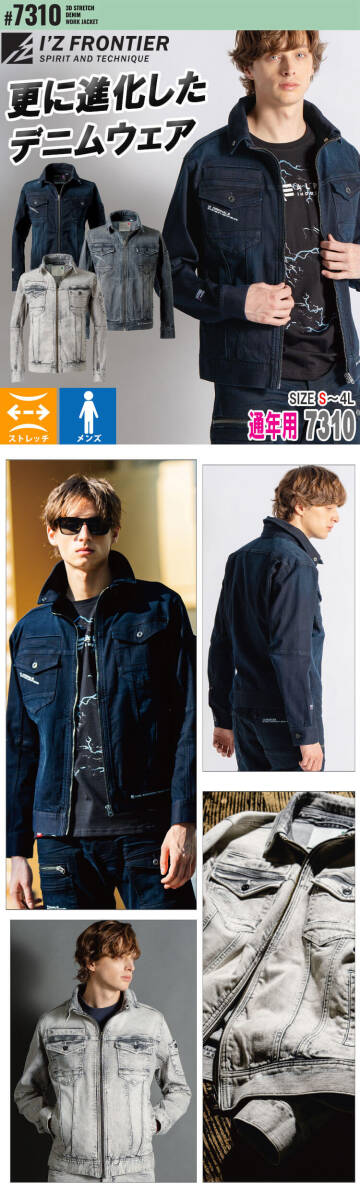 アイズフロンティア デニムワークジャケット 7310 通年 3L 14スチールグレー