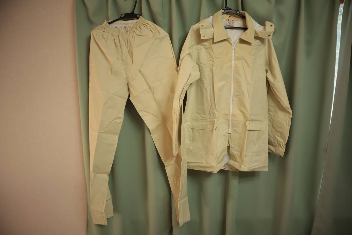 | ☆レトロ ゴム引き ベージュ レインコート合羽上下 3L☆ |