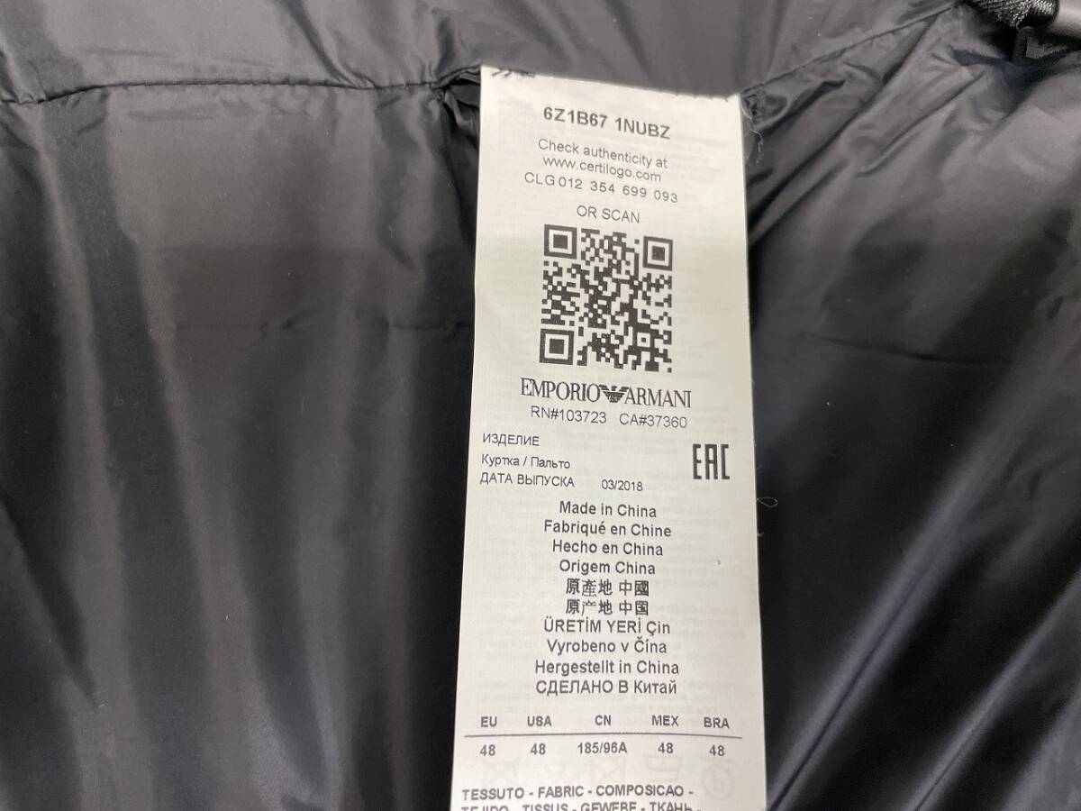 新品同様 EMPORIO ARMANI エンポリオ アルマーニ ウール ダウンジャケット 6Z1B67 INUBZ US 48 グレー メンズ