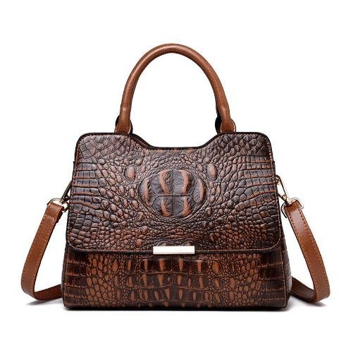 高品質 レザー調 クロコダイル柄 ハンドバッグ ショルダーバッグ ブラウン レディース 女性 【n406】