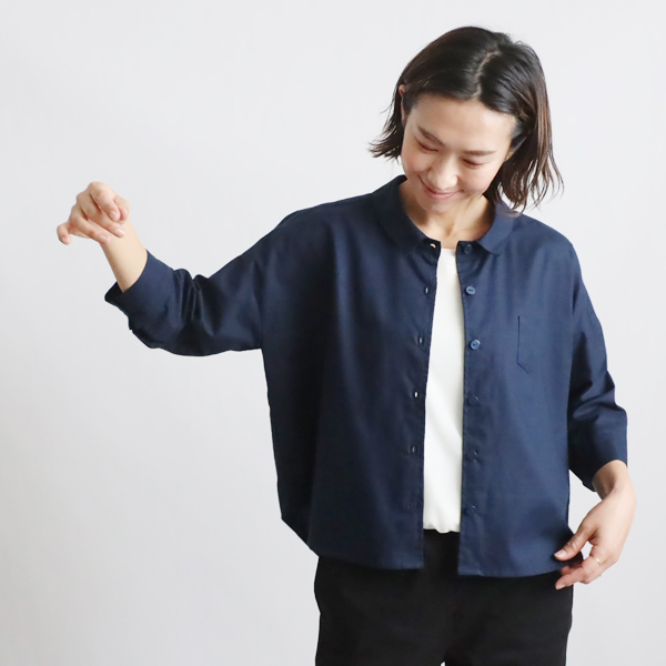 「 角襟 ゆったり シャツ ジャケット 」を作りました。