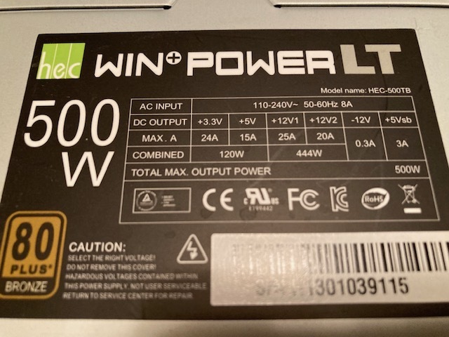 HEC社 500W 電源ユニット、80PLUS認証 BLONZE