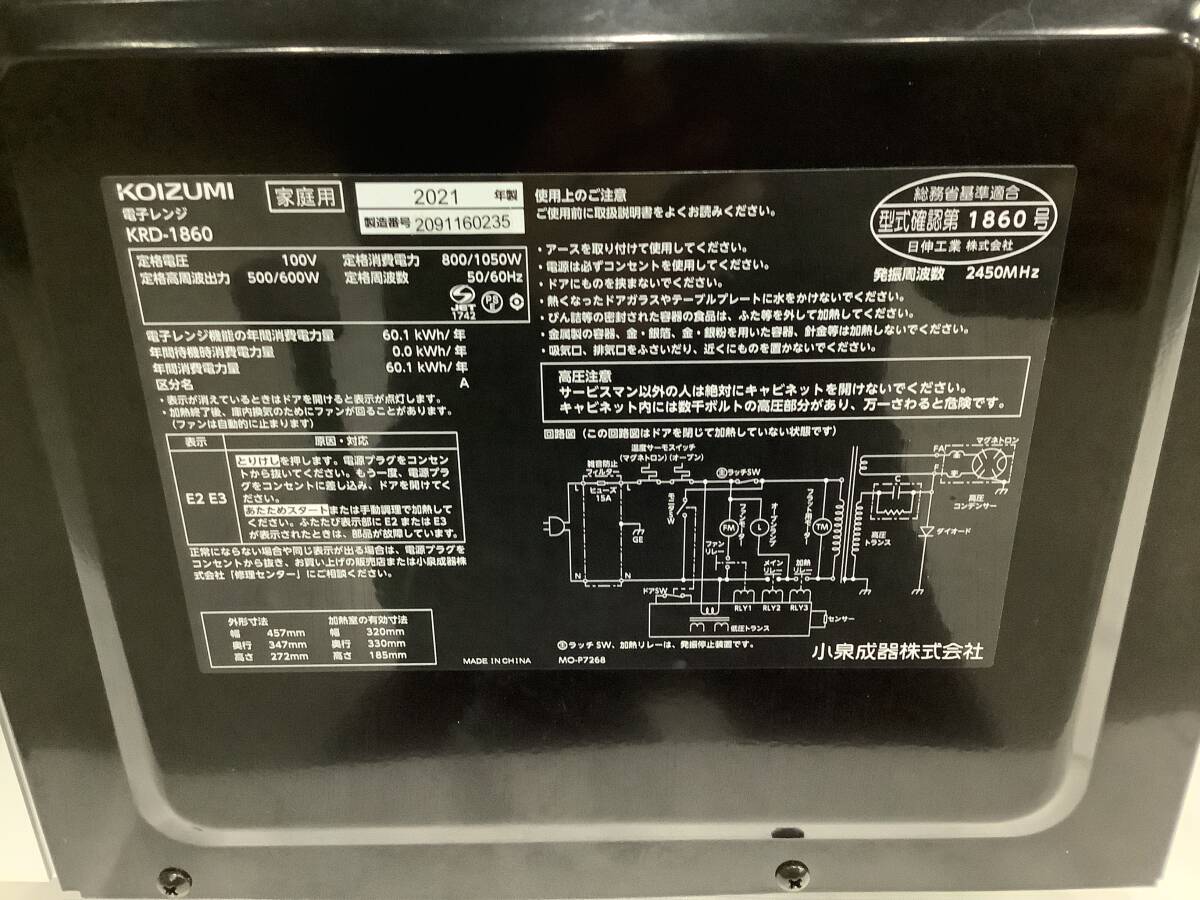 商品名 : KOIZUMI コイズミ 単機能電子レンジ KRD-1860