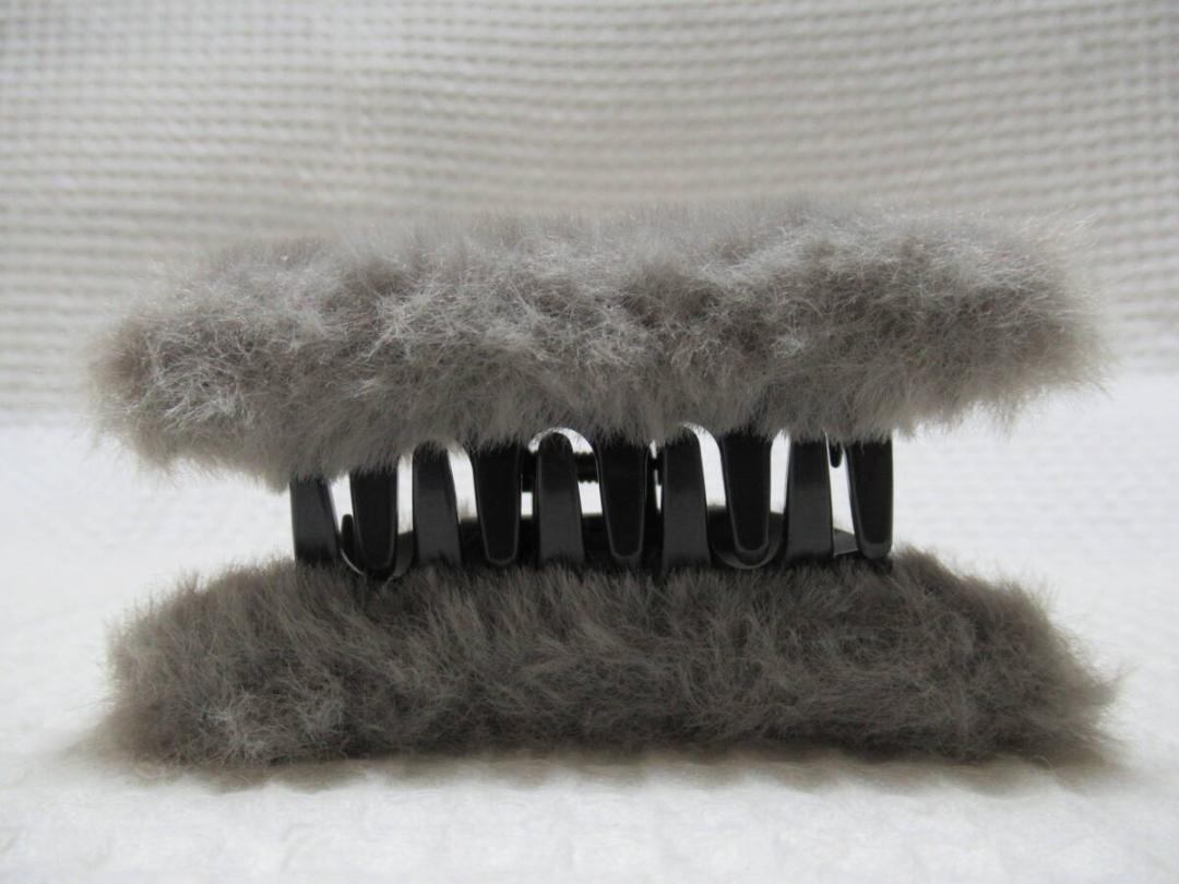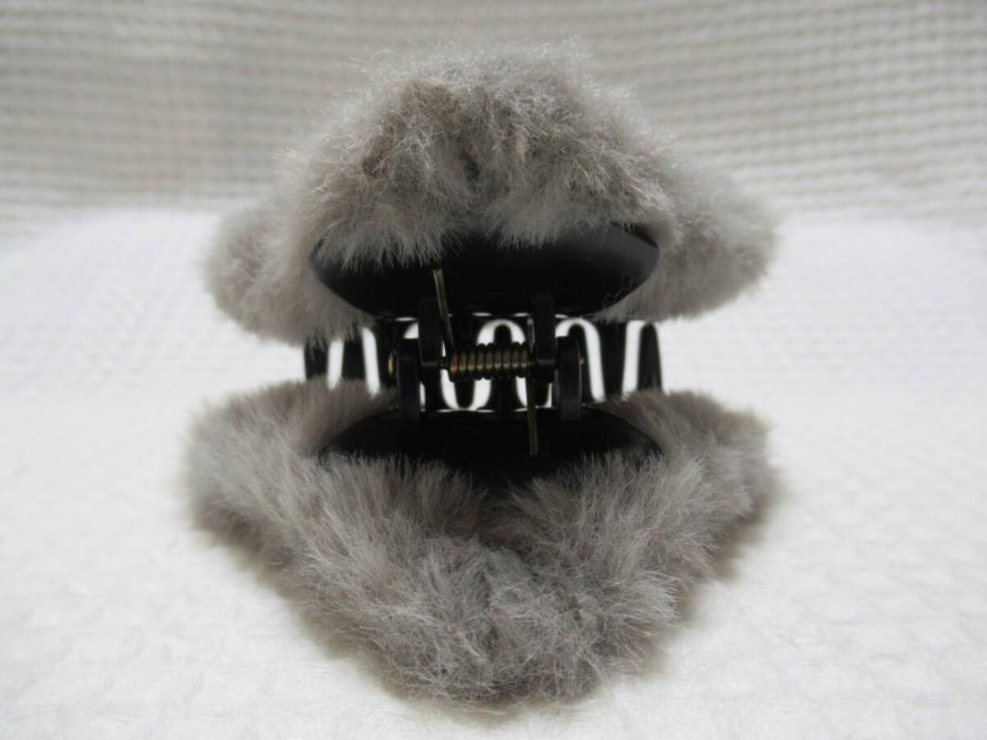 フェイクファー付き三角形型の樹脂 バンスクリップ グレー系