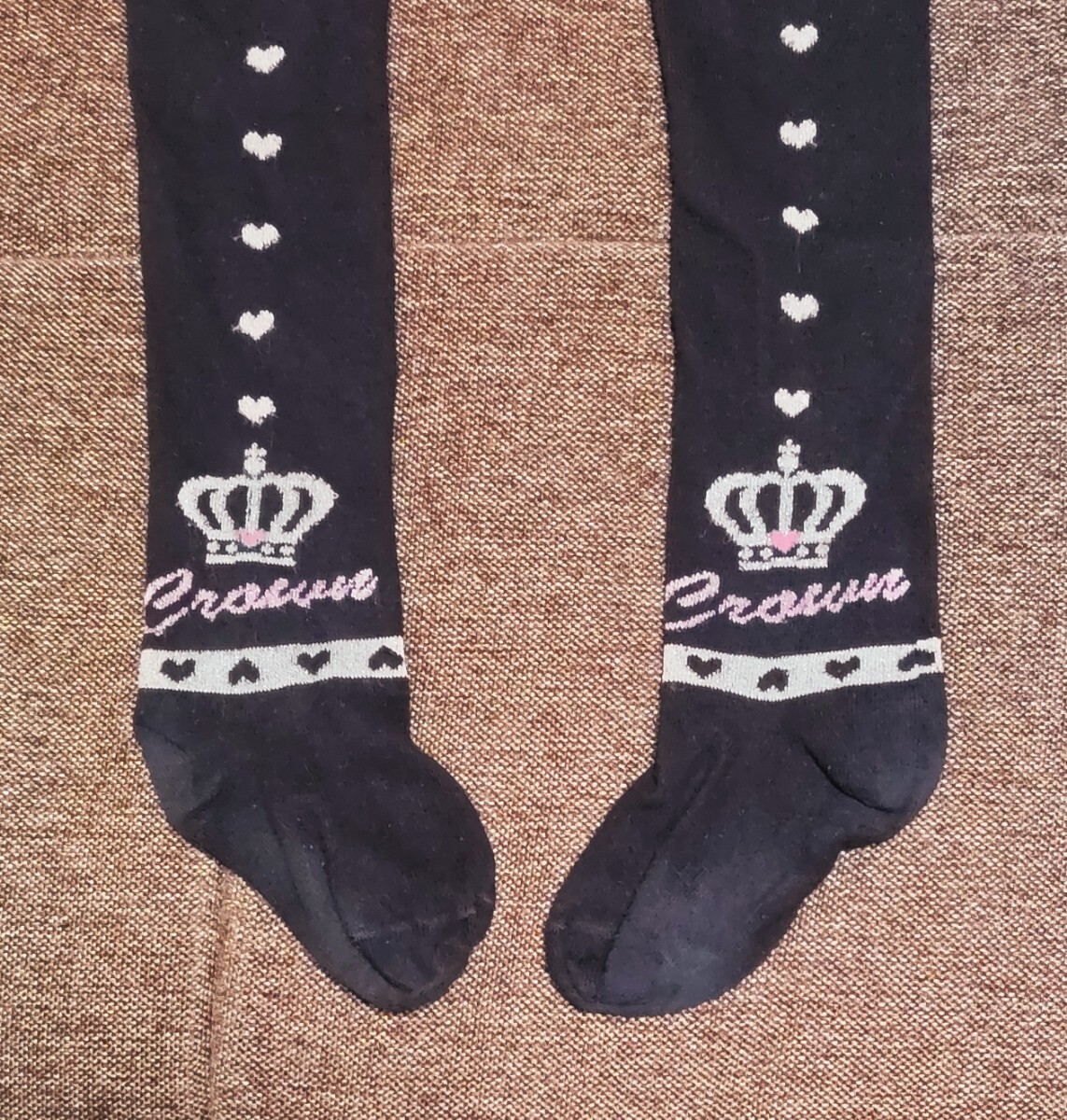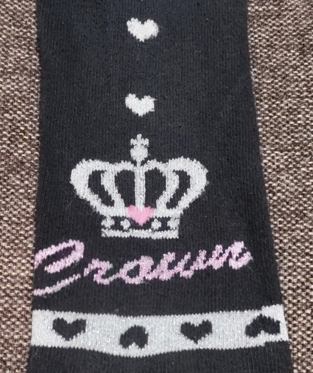 タイツ 防寒 黒にキラキラの王冠とハート かわいい
